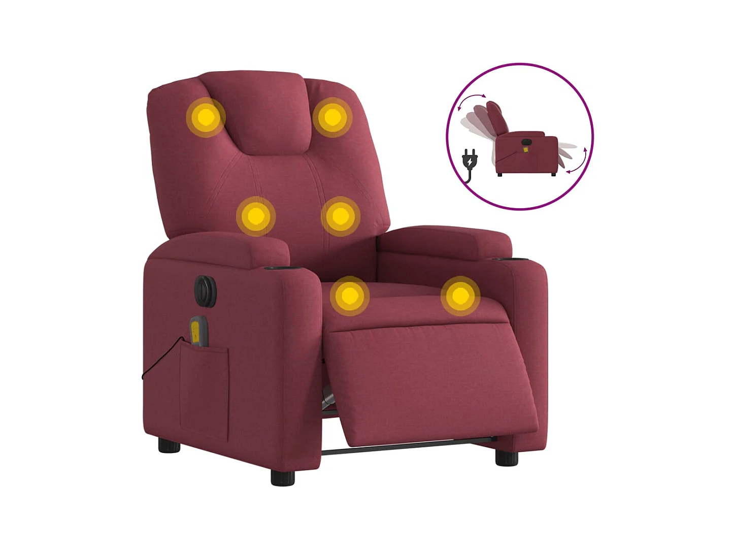 Poltrona reclinável de massagens elétrica tecido vermelho tinto