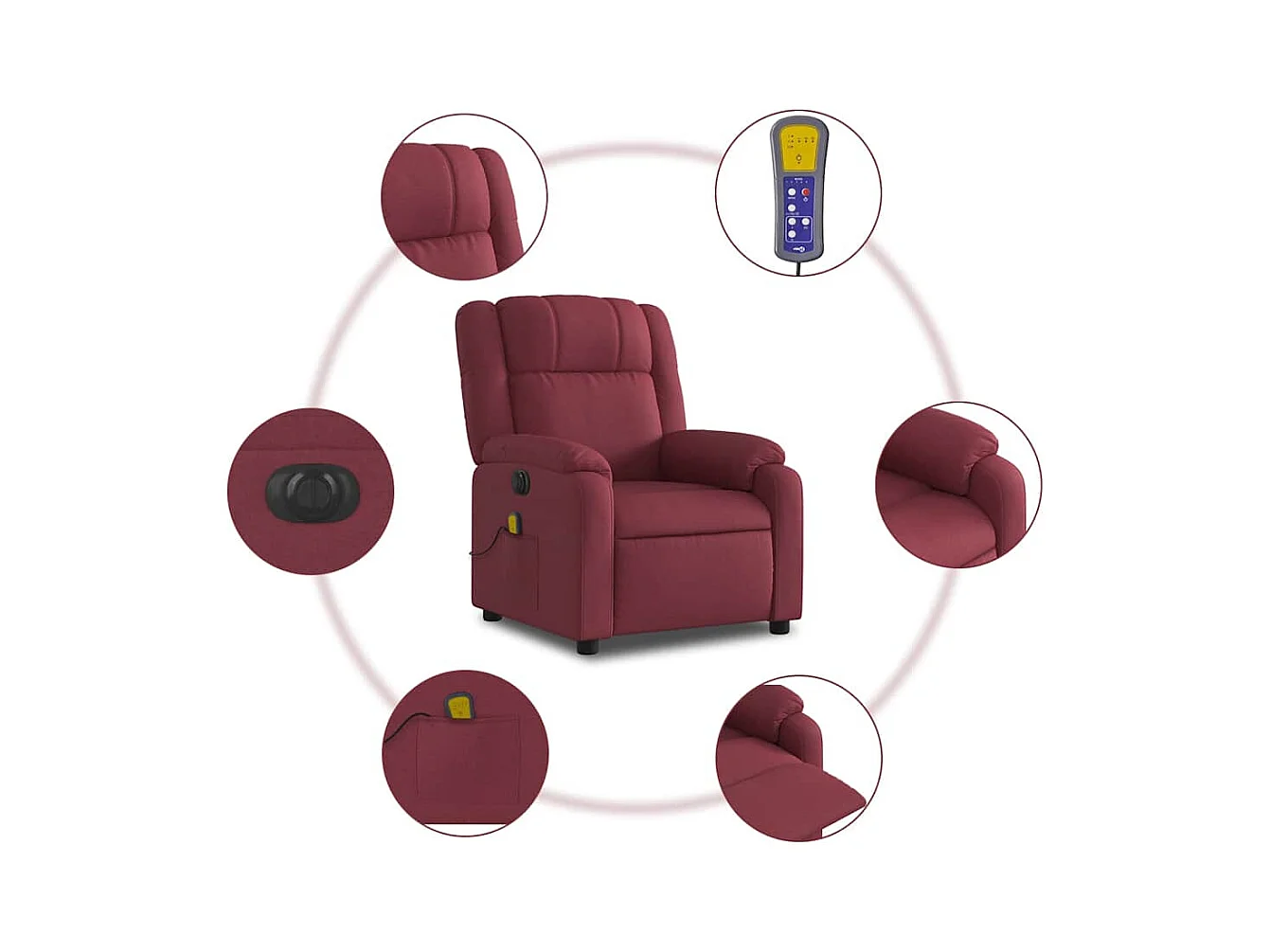 Poltrona reclinável de massagens elétrica tecido vermelho tinto SHL12230