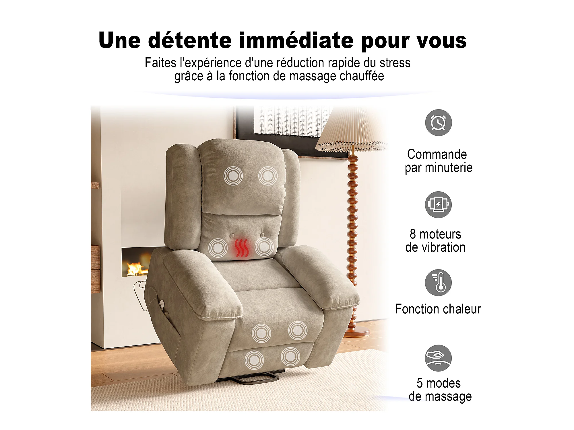 Poltrona reclinável elétrica 160° com controle remoto, massagem de 8 pontos + massagem lombar de 2 pontos, couro PU, marrom