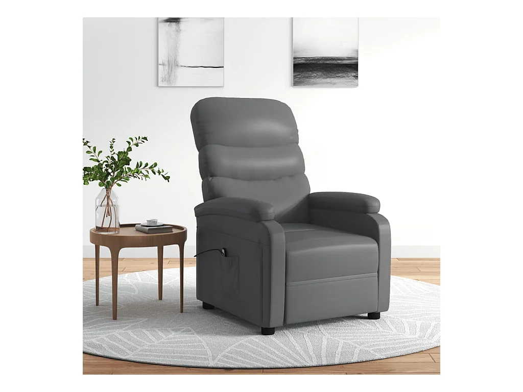 Poltrona reclinável elevatória elétrica couro artif. cinzento