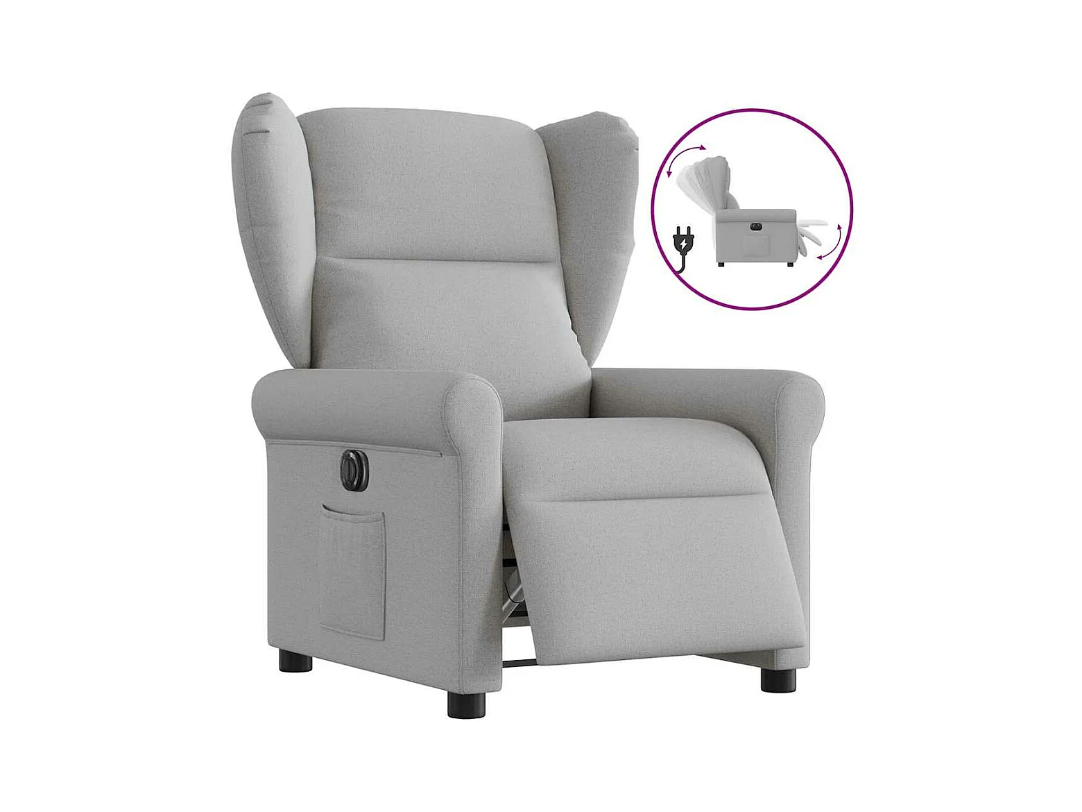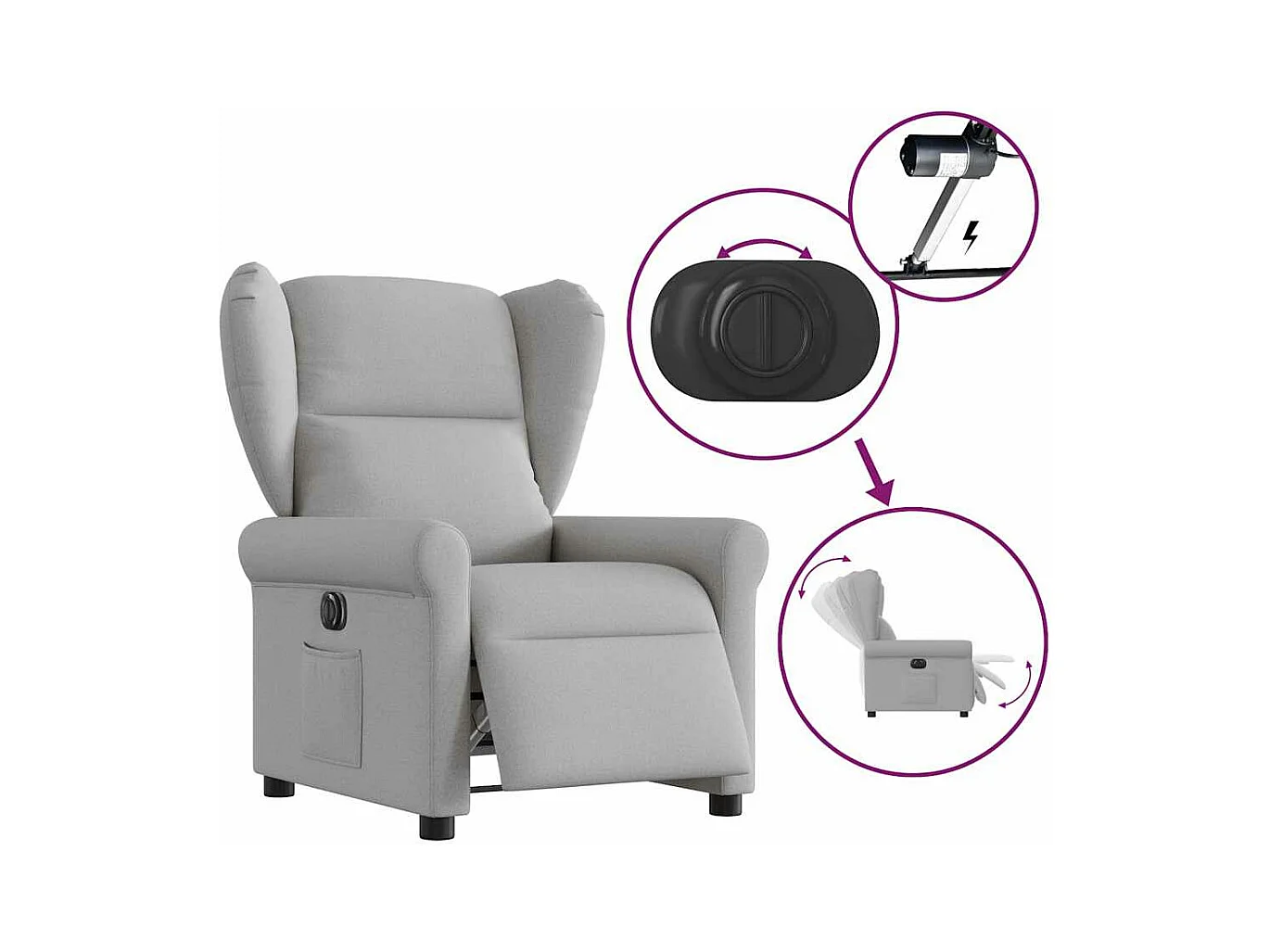 Poltrona reclinável elétrica de tecido cinza nuvem
