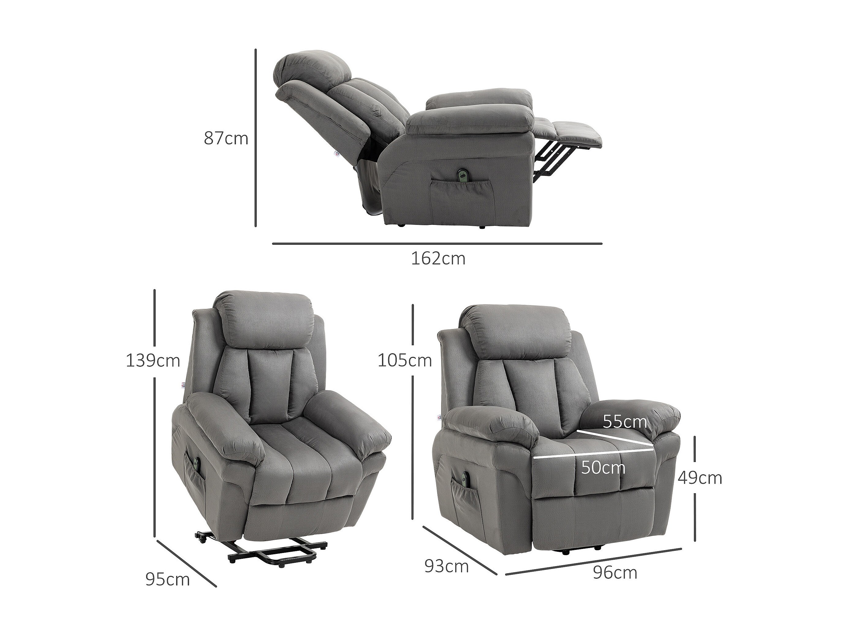 Poltrona reclinável elétrica em couro sintético com elevador de TV, reclinável, cinza claro