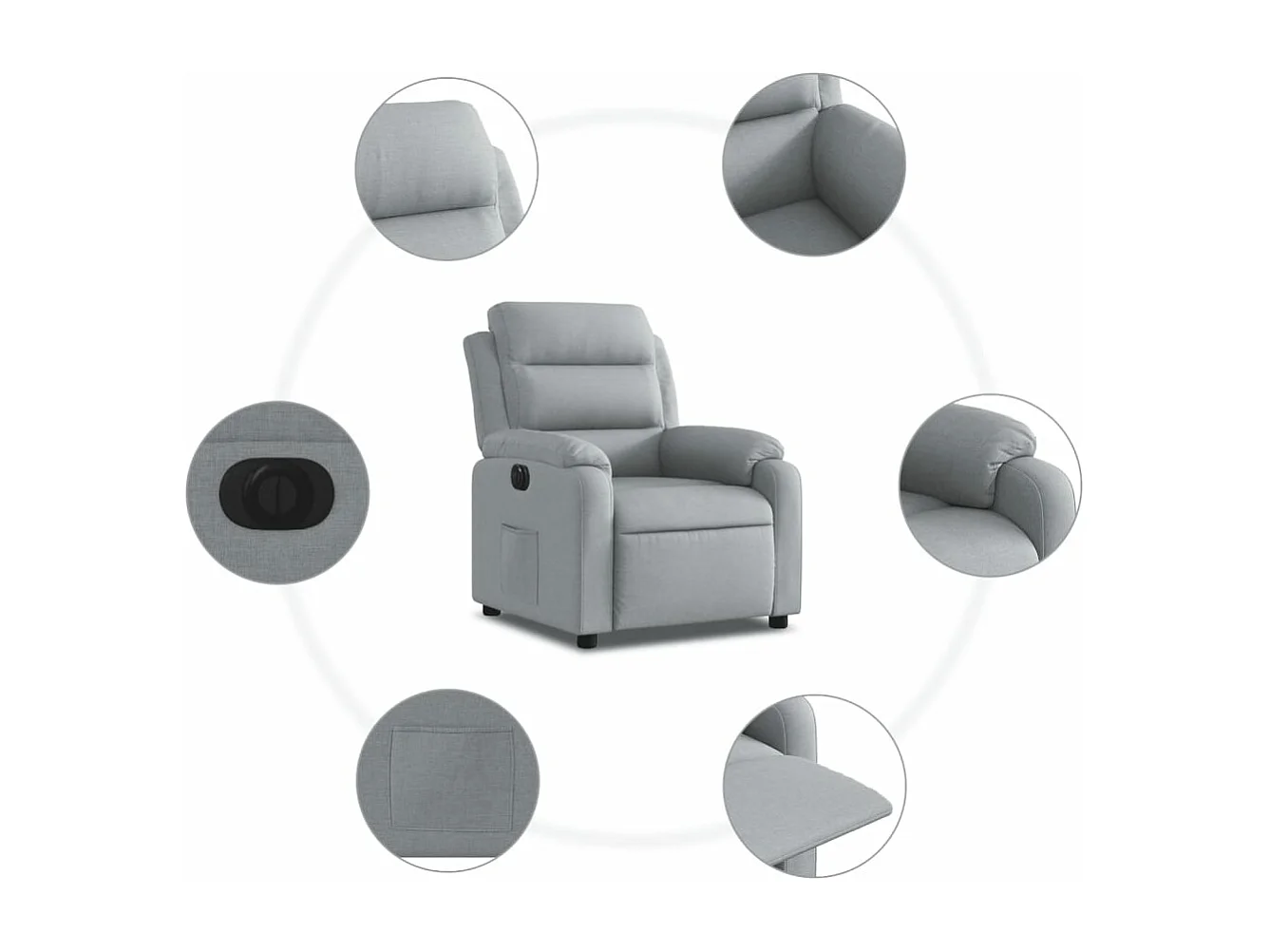Poltrona reclinável elétrica tecido cinzento-claro
