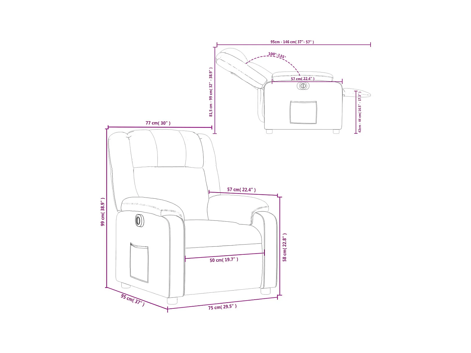Poltrona reclinável elétrica tecido cor creme