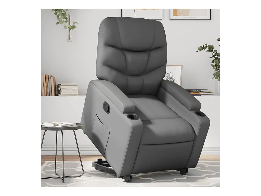Poltrona reclinável elevatória couro artificial cinzento PT988303