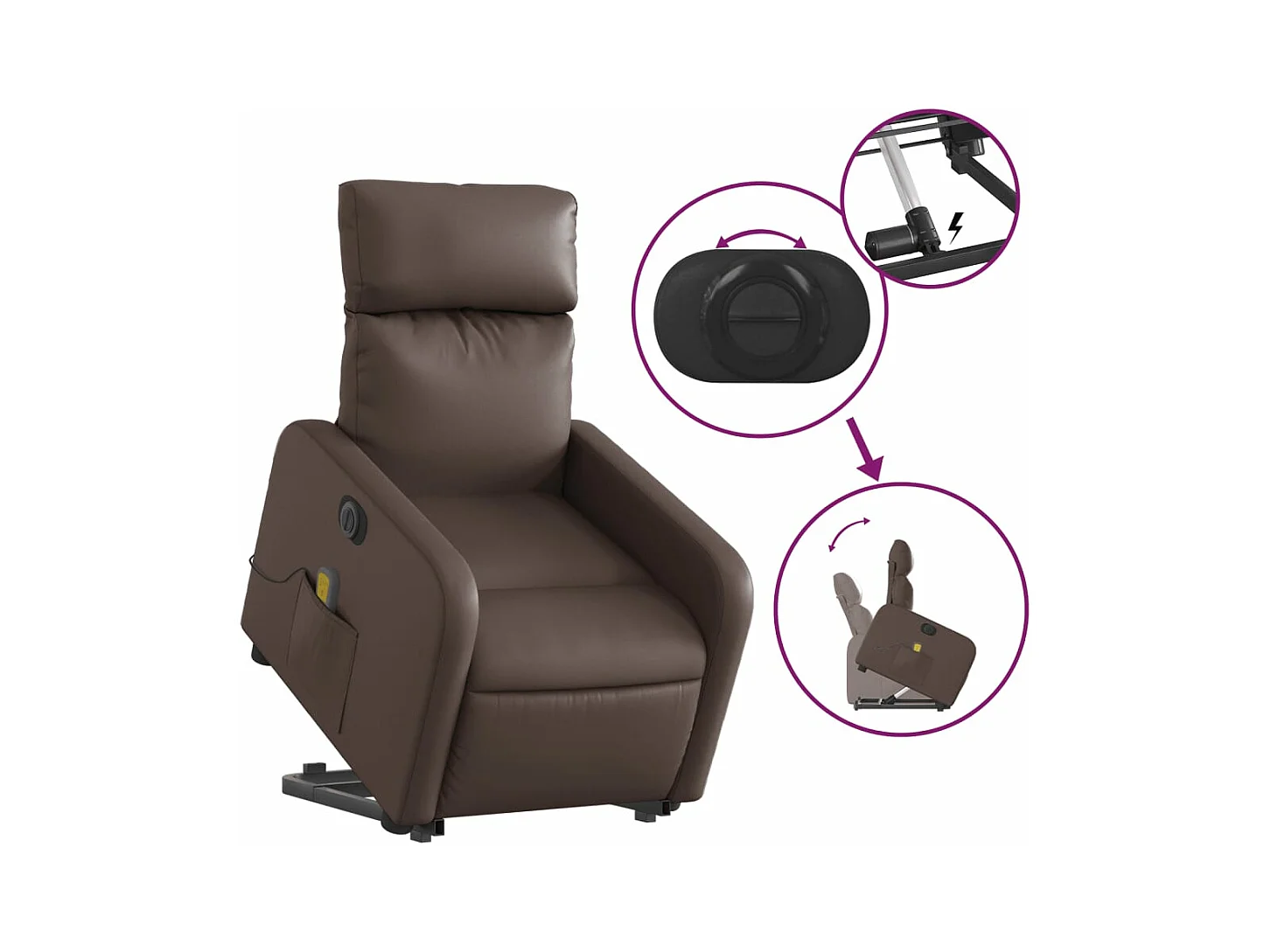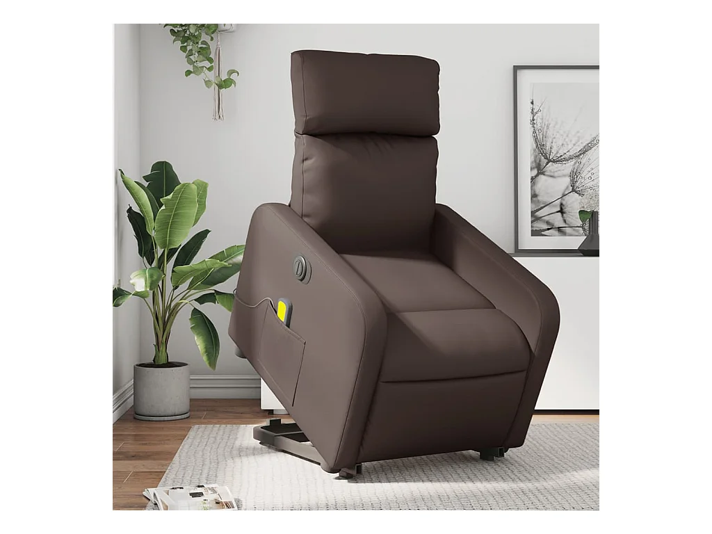 Poltrona reclinável elevatória elétrica couro artif. castanho