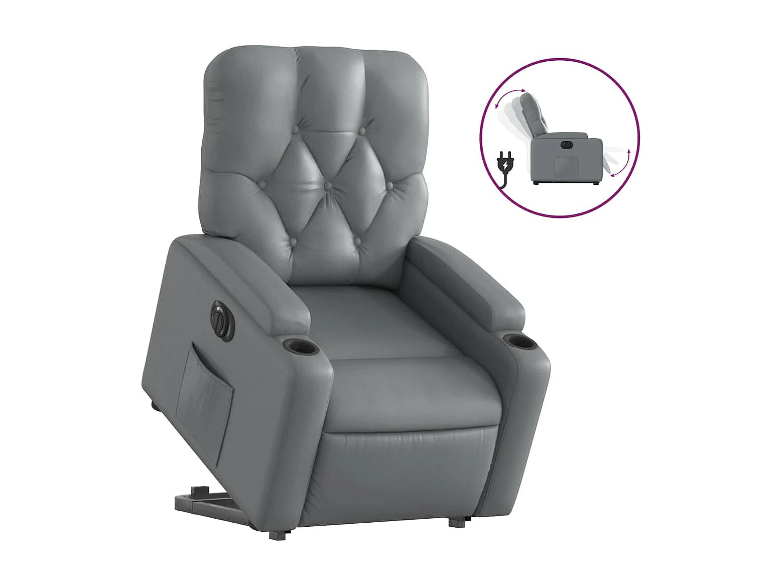 Poltrona reclinável elétrica couro artificial cinzento