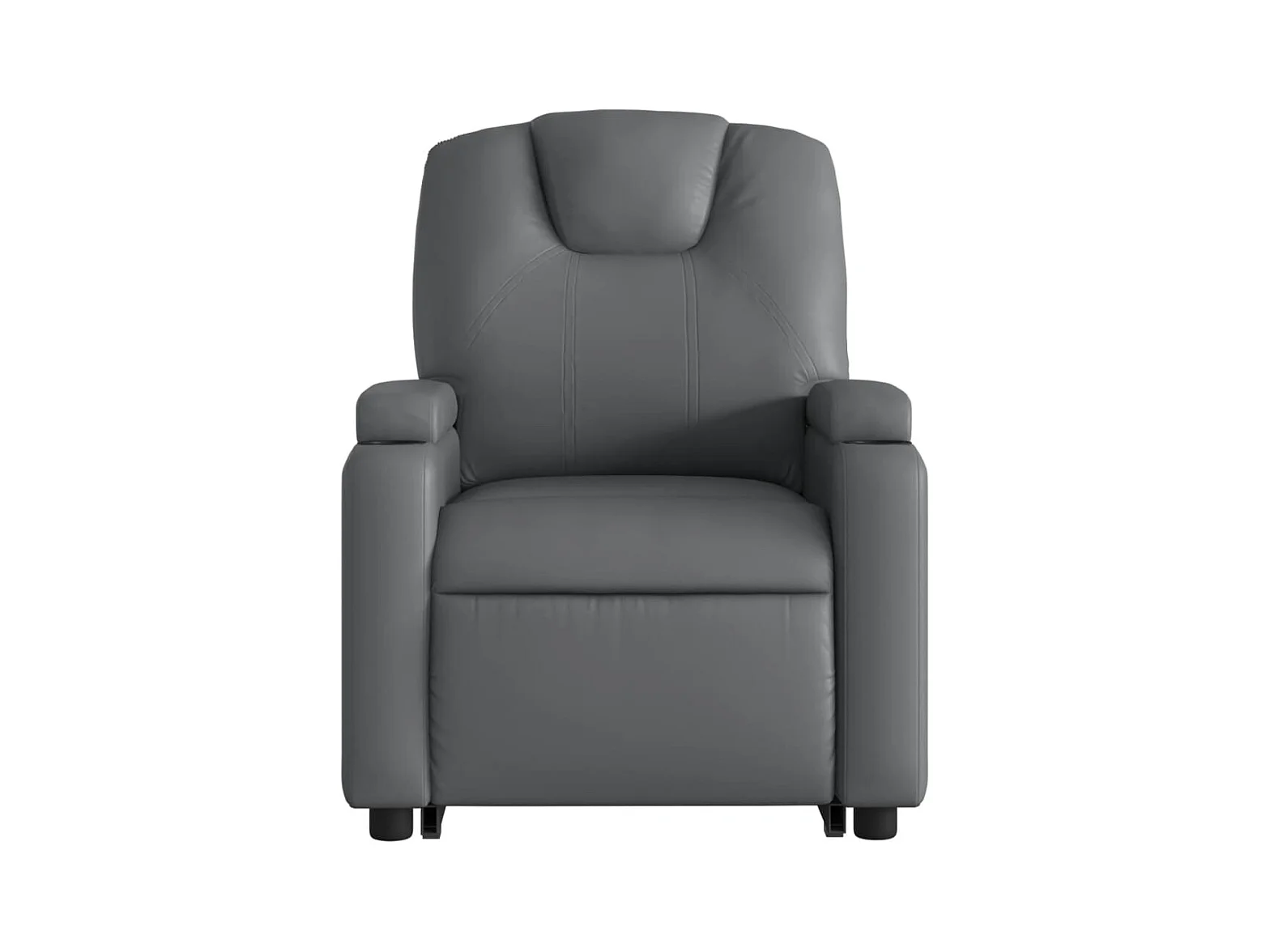 Poltrona reclinável elevatória elétrica couro artificial cinza