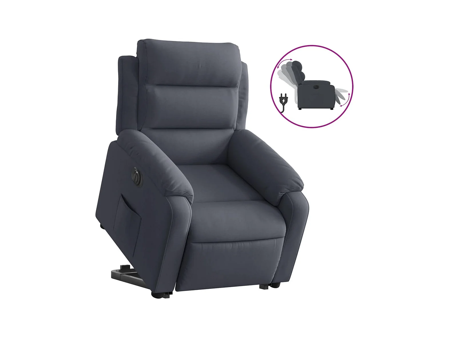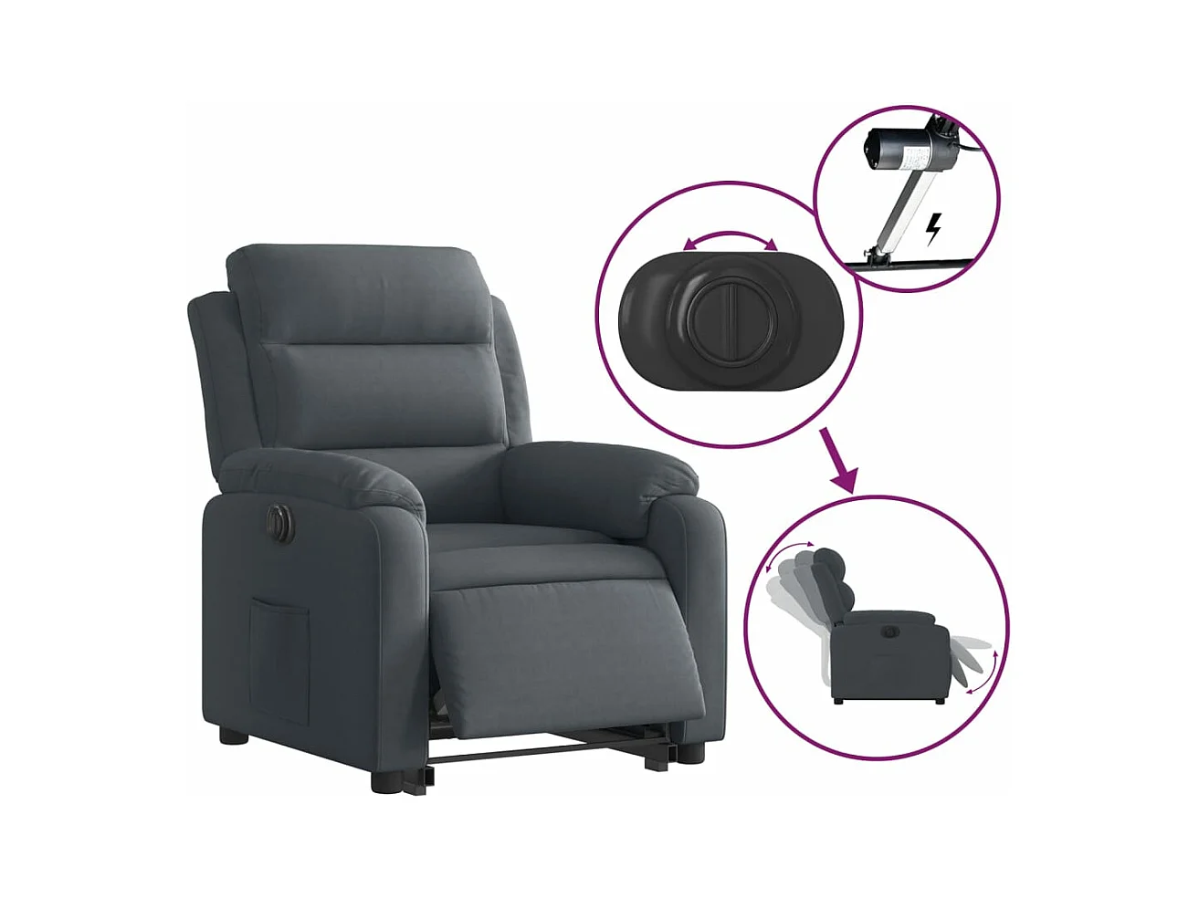 Poltrona reclinável elevatória elétrica veludo cinzento-escuro