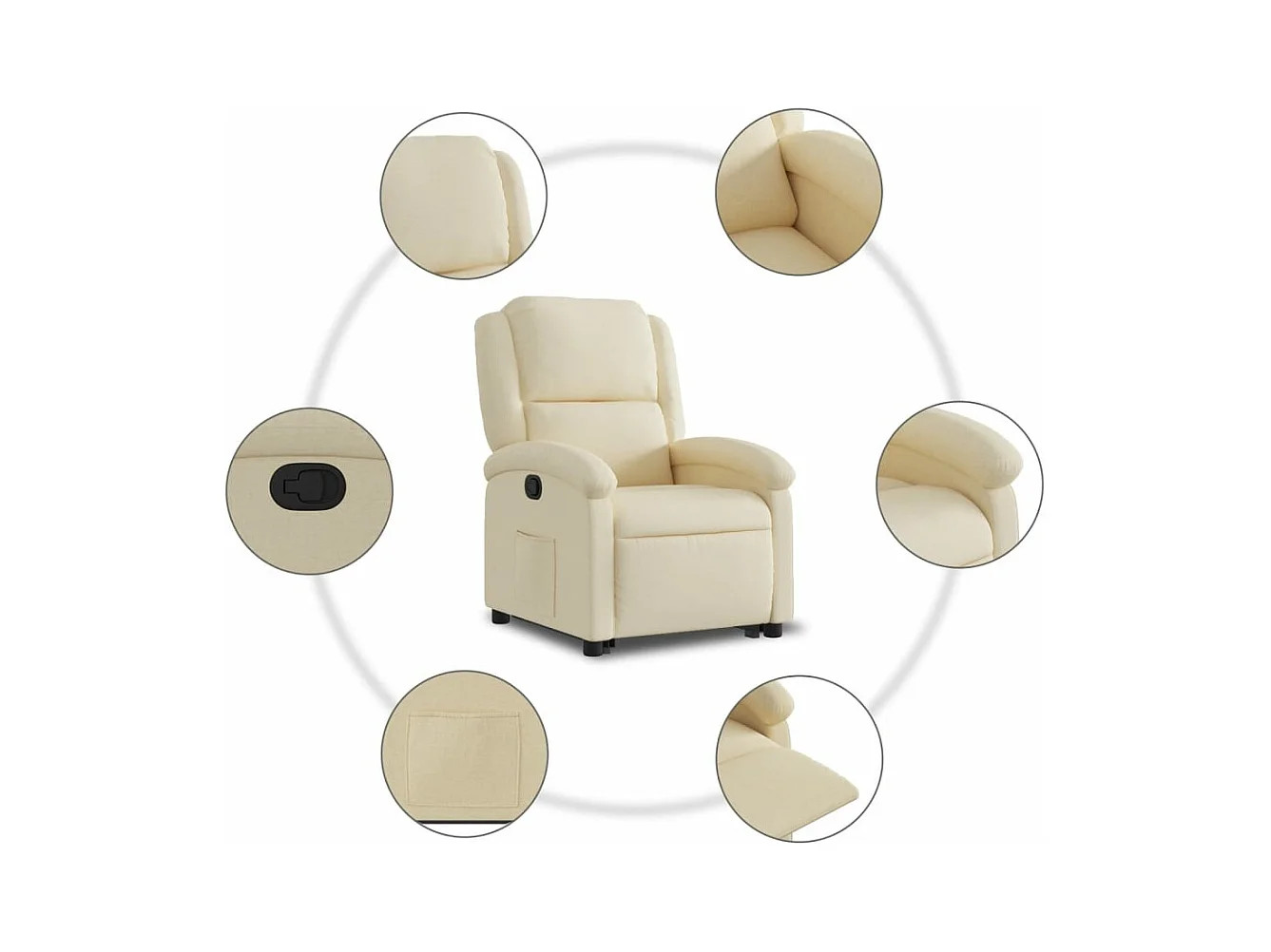 Poltrona massagens reclinável elevatória elétrica veludo creme