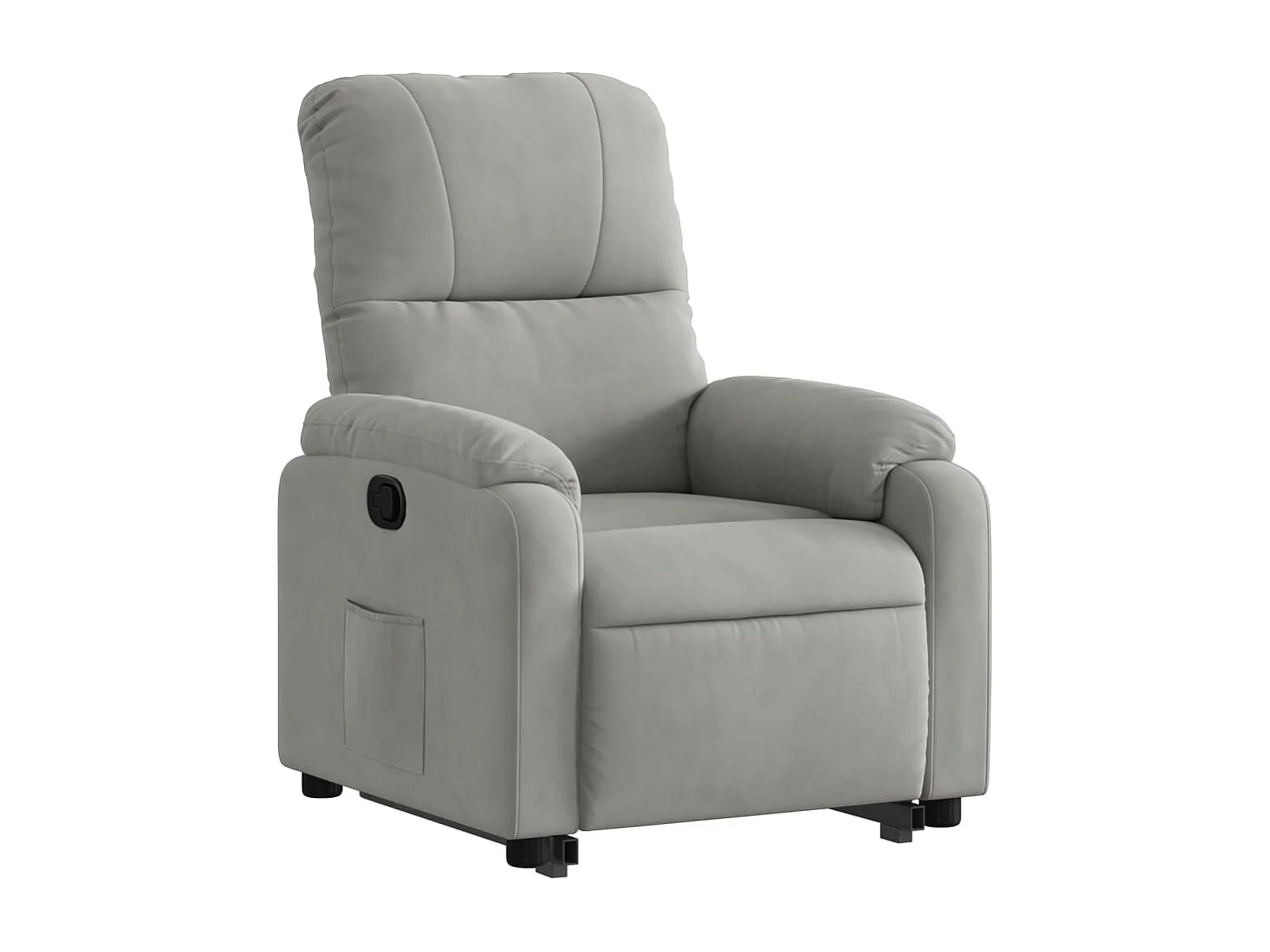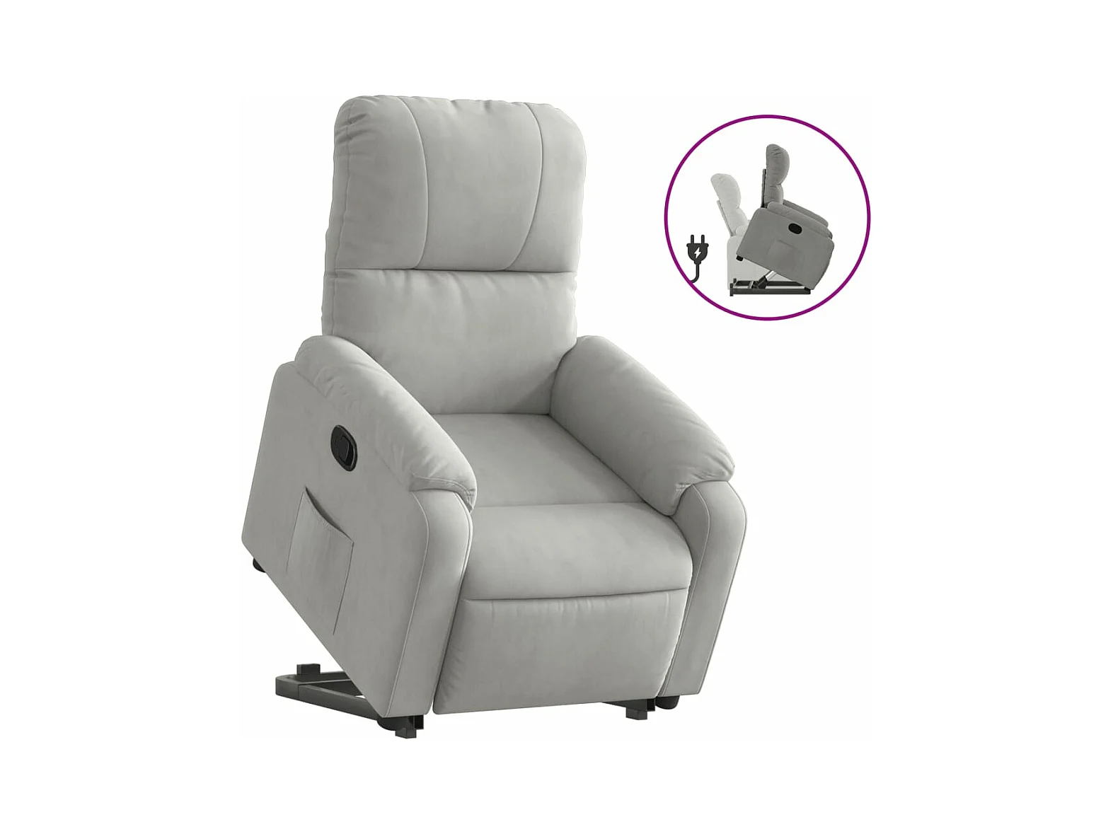 Poltrona reclinável elevatória tecido de microfibra cinza-claro