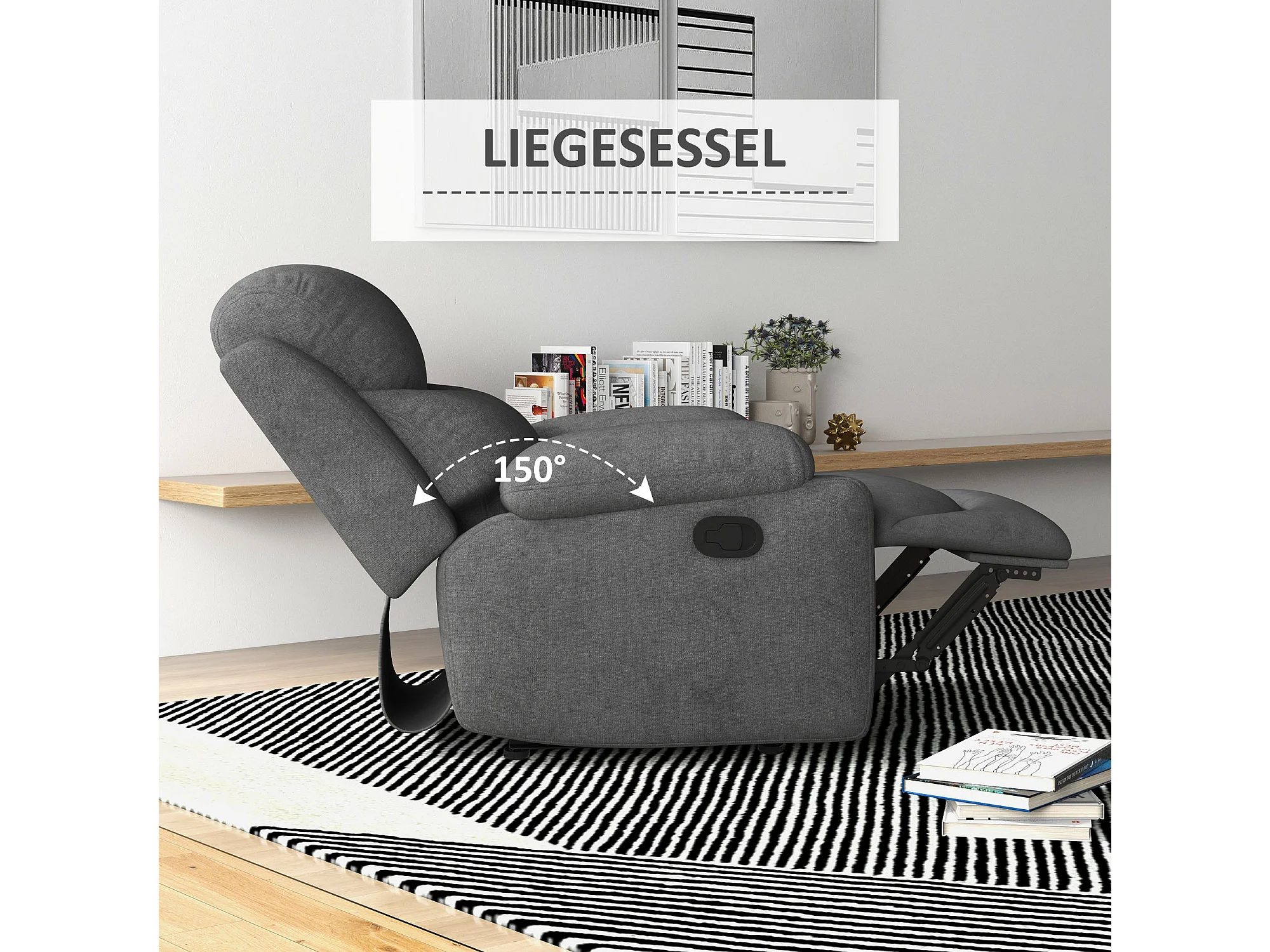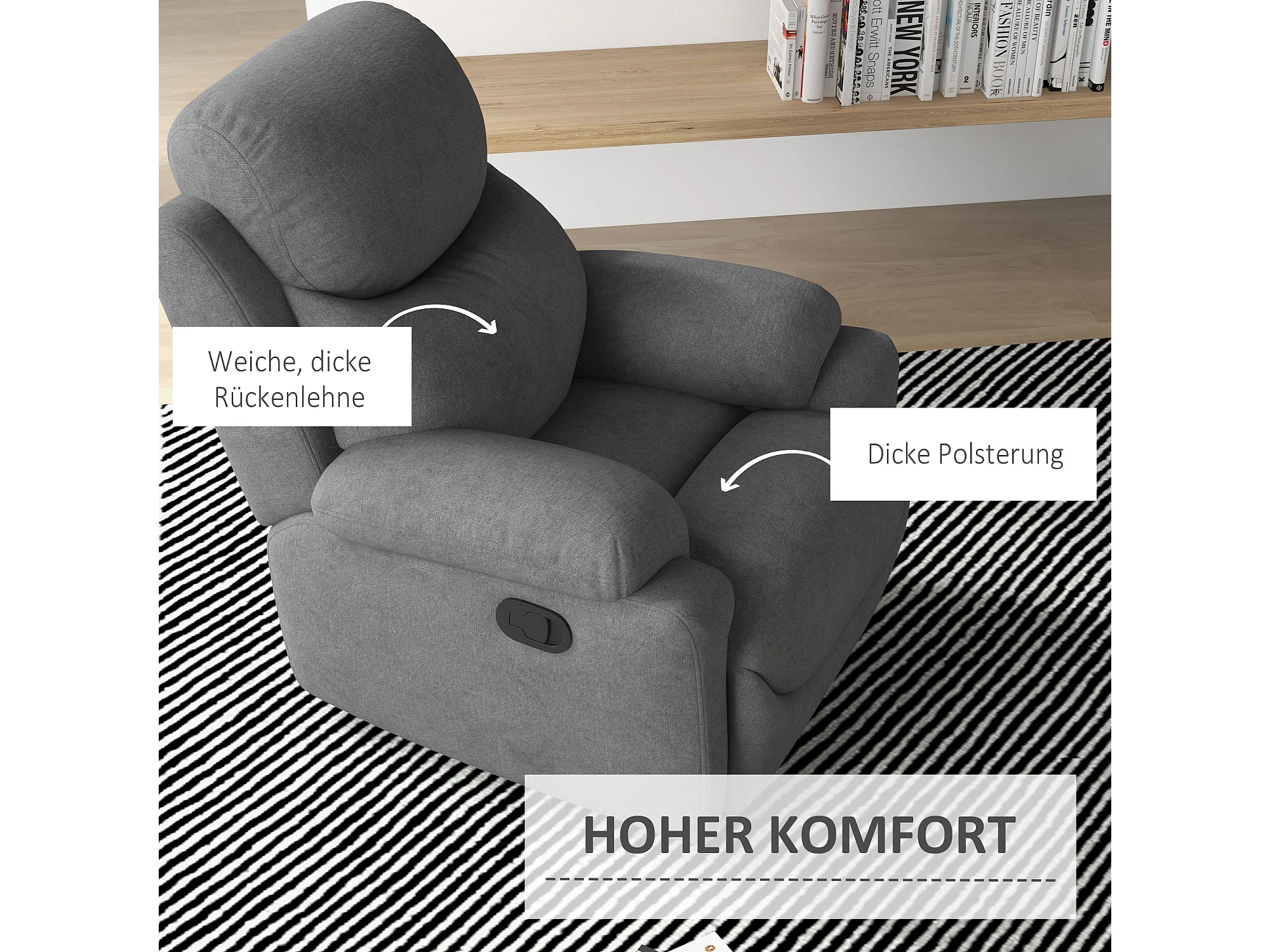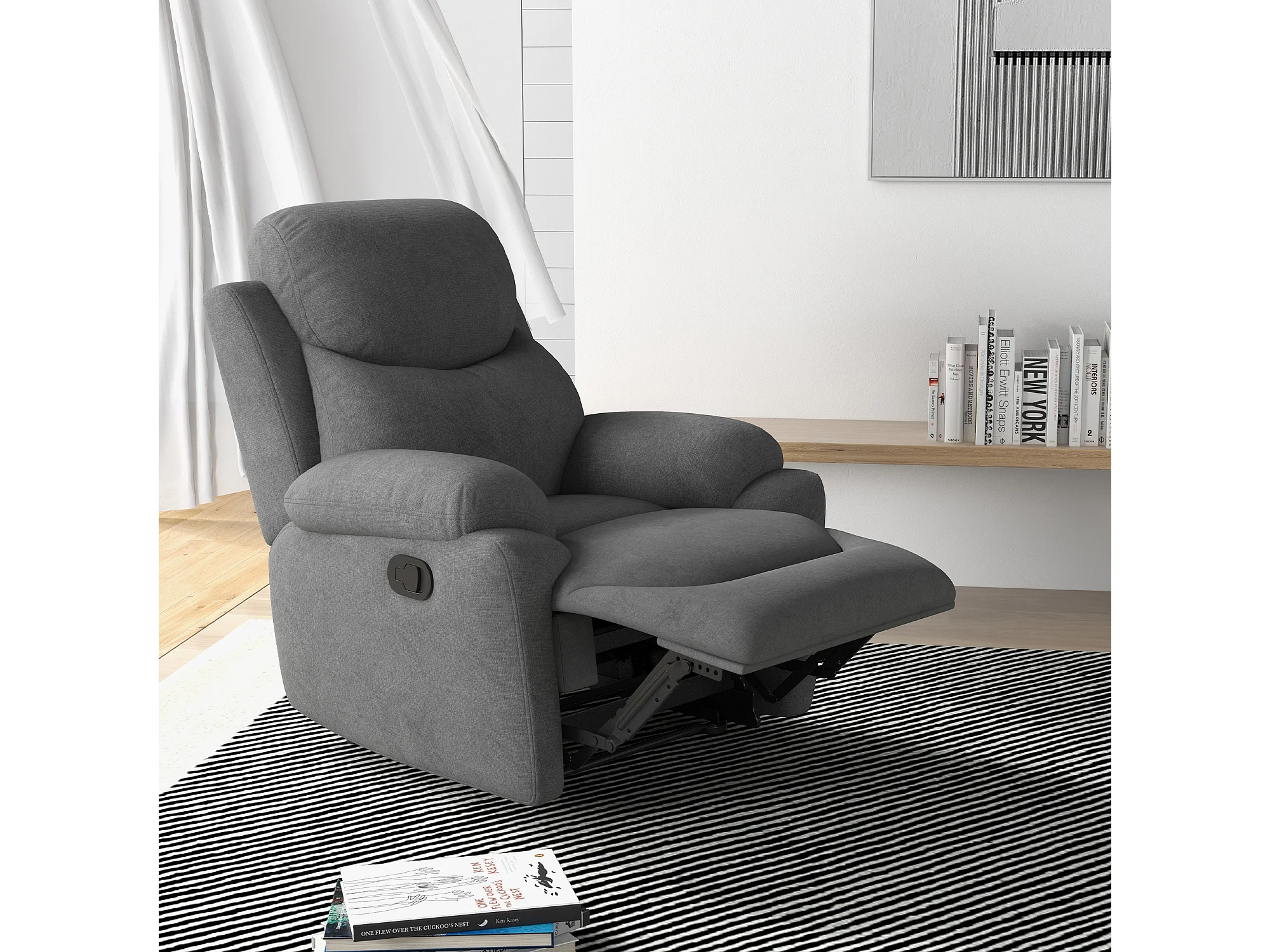 Poltrona reclinável em linho cinza 150° sala de TV quarto 93x88x102 cm