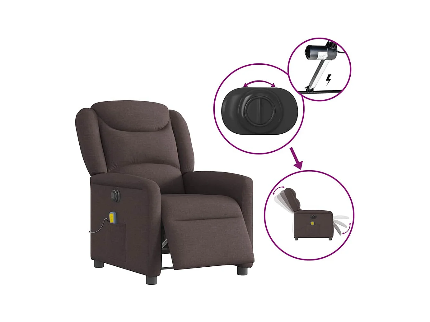 Poltrona reclinável massagens elétrica | Poltrona Confortável tecido castanho-escuro SHL455705