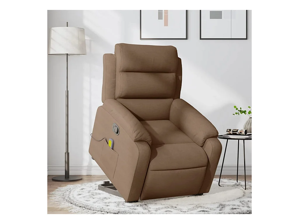 Poltrona massagens reclinável elevatória tecido castanho-escuro SHL201154