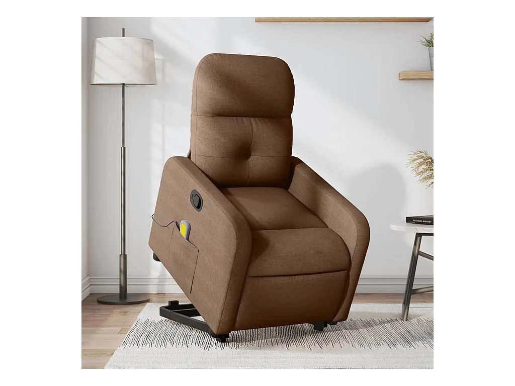 Poltrona massagens reclinável elevatória tecido castanho-escuro