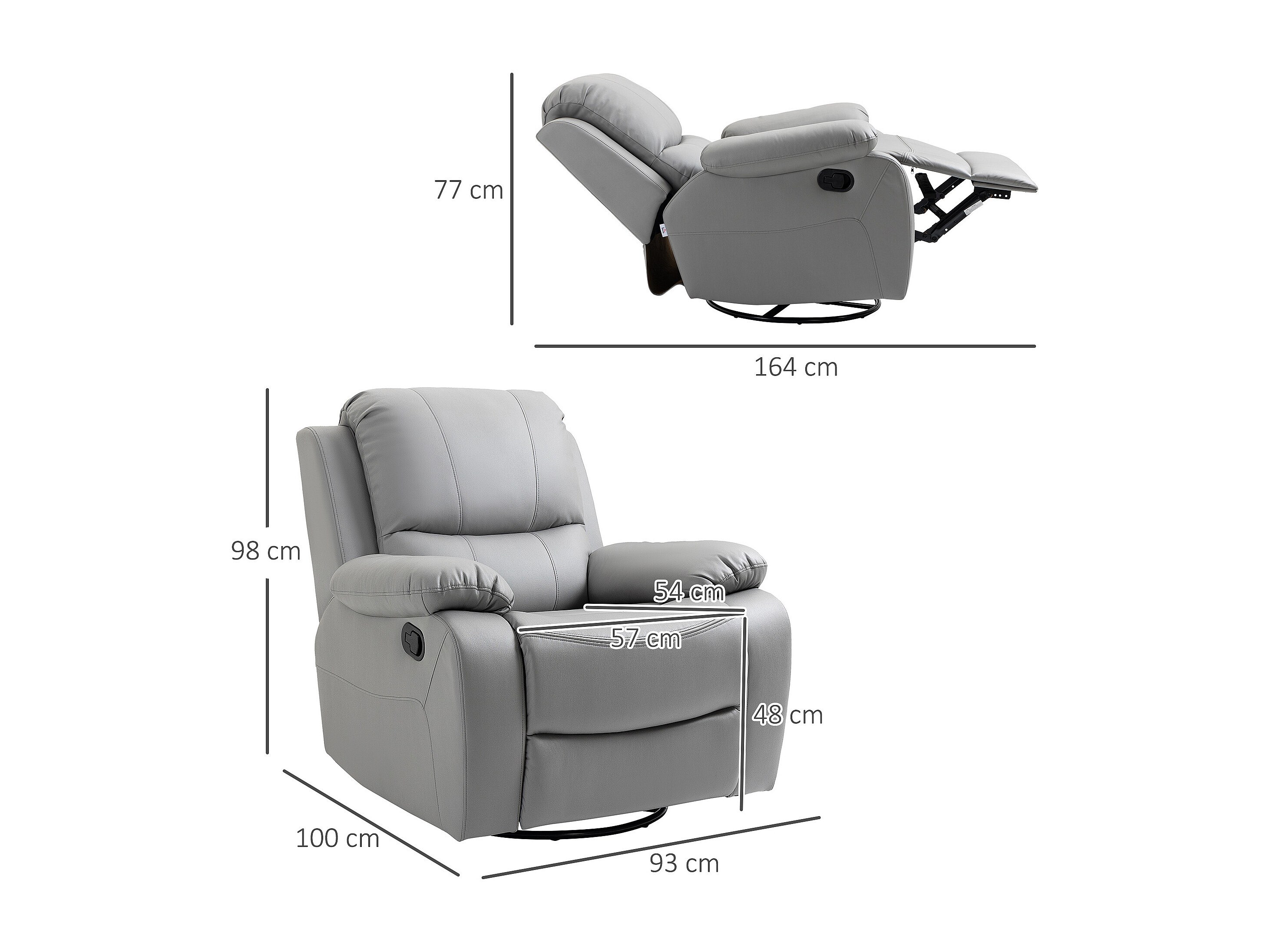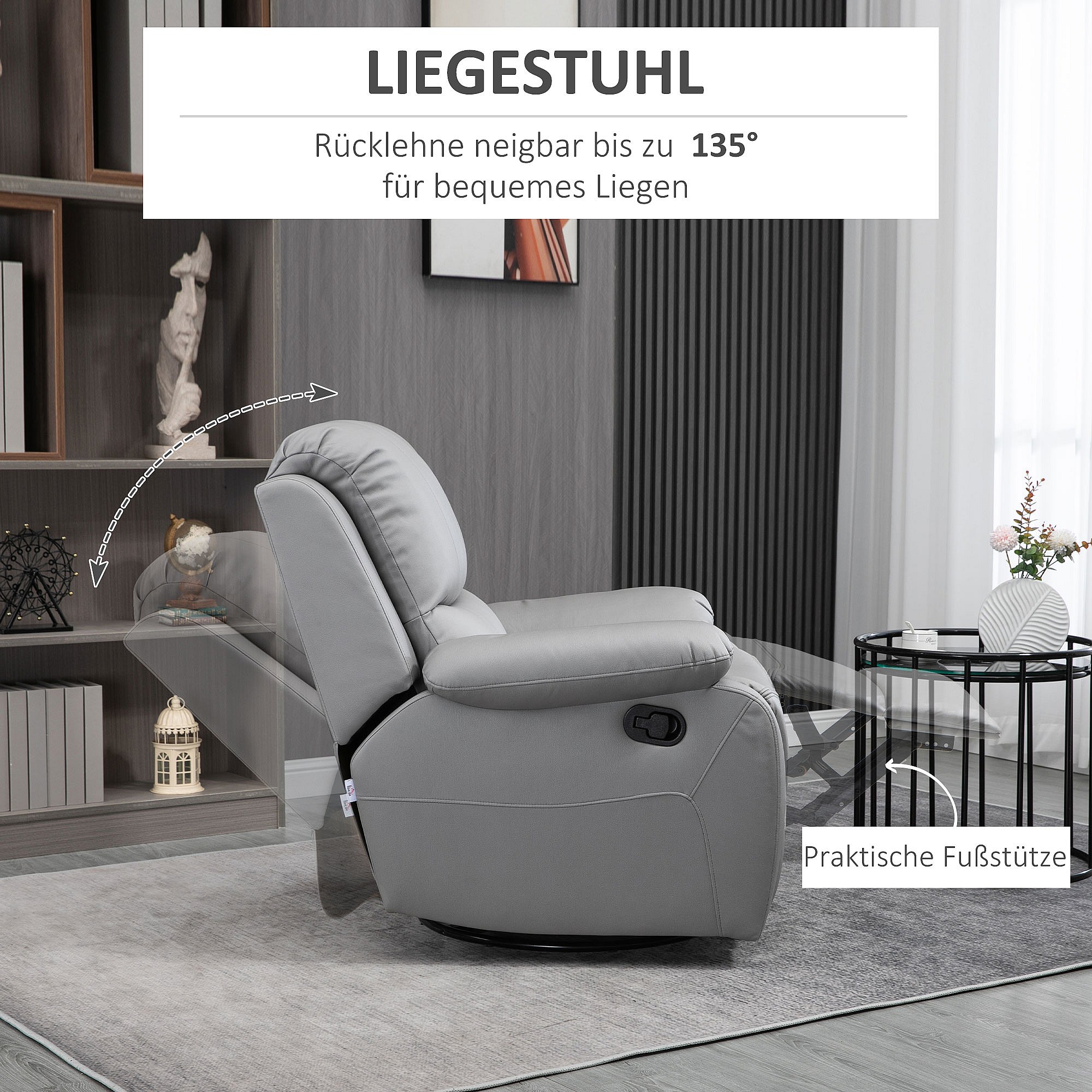 Poltrona relax giratória 135° com apoio para os pés, poliéster cinza, 72x71x60cm, sala de estar