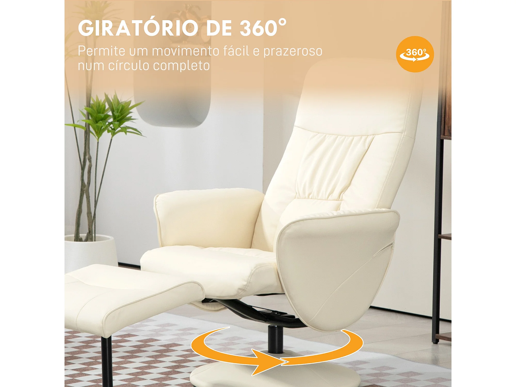 Poltrona Relax HOMCOM com Apoio para os Pés Reclinável até 145° e Giratória 360° em Creme