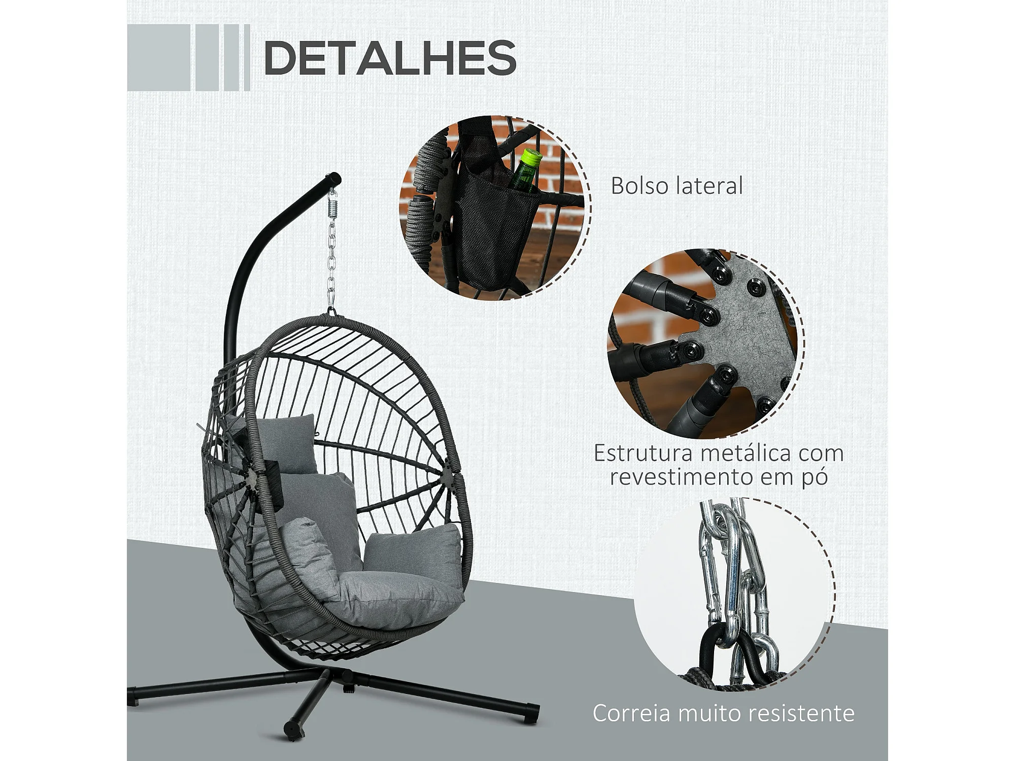 Poltrona Suspensa de Jardim Cascais com Almofada – Estilo Moderno e Conforto Superior