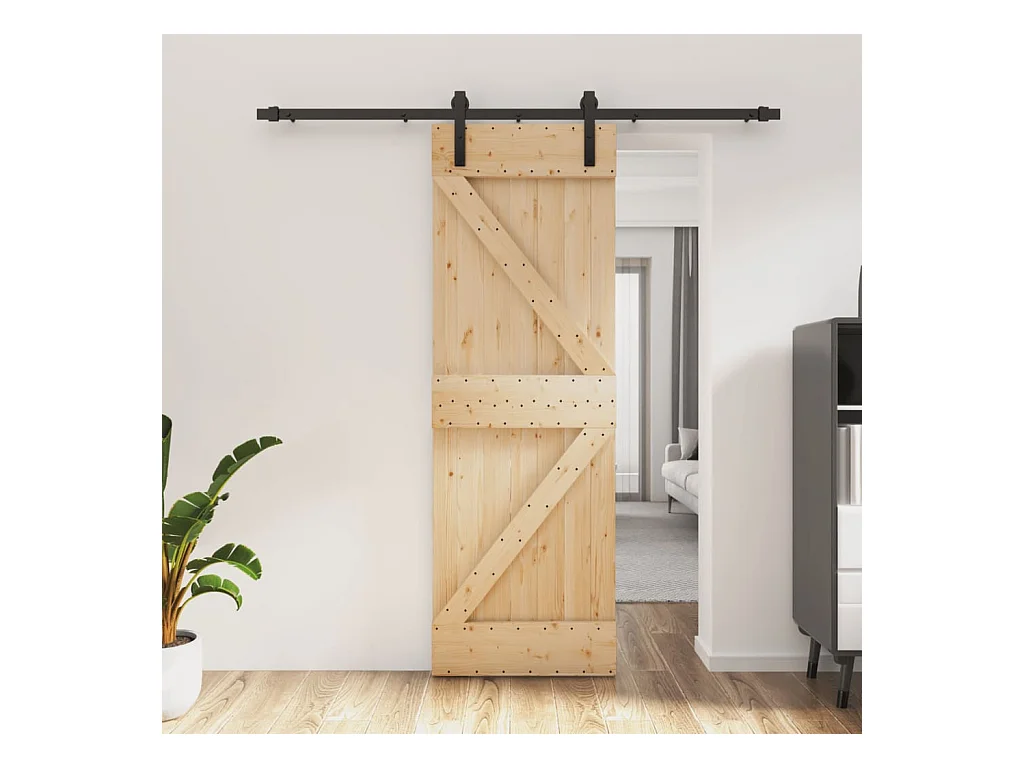 Porta de correr com ferragens 70x210 cm madeira de pinho maciça PT615782