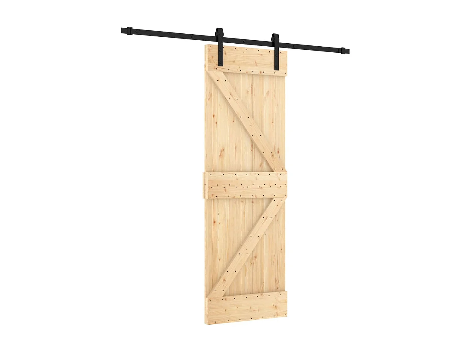 Porta de correr com ferragens 70x210 cm madeira de pinho maciça PT194762