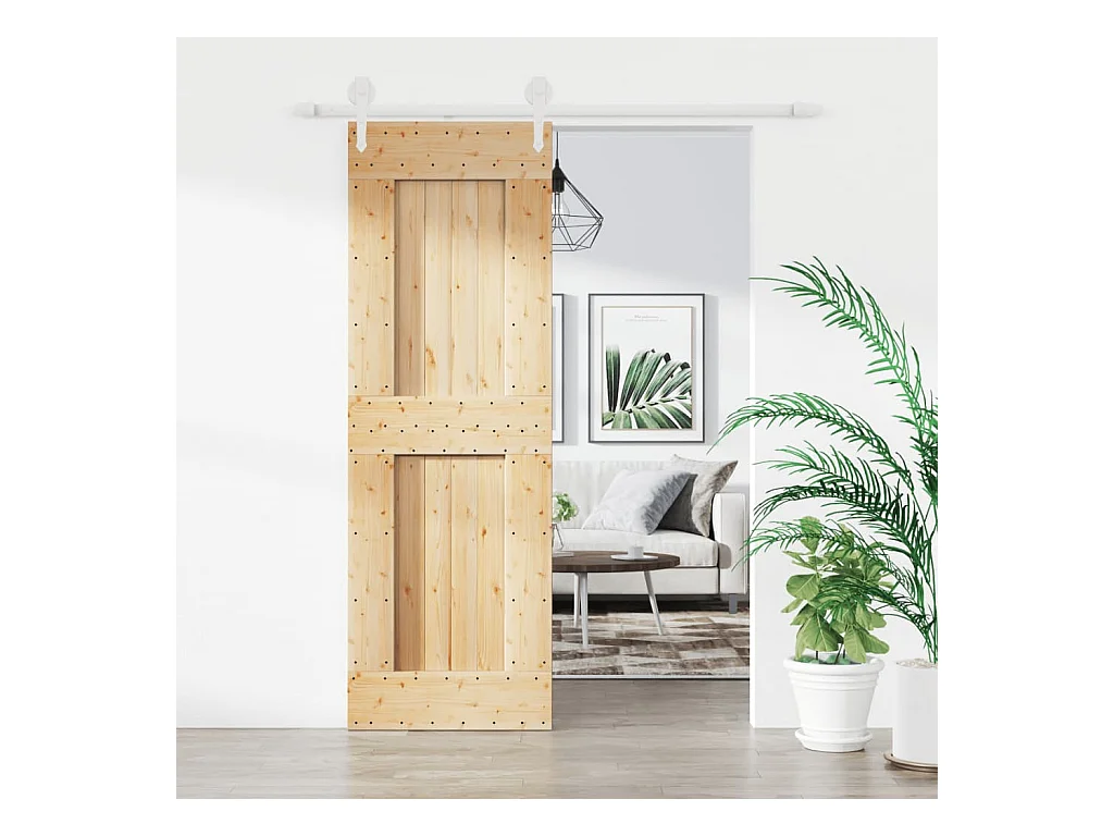Porta de correr com ferragens 70x210 cm madeira de pinho maciça PT615782