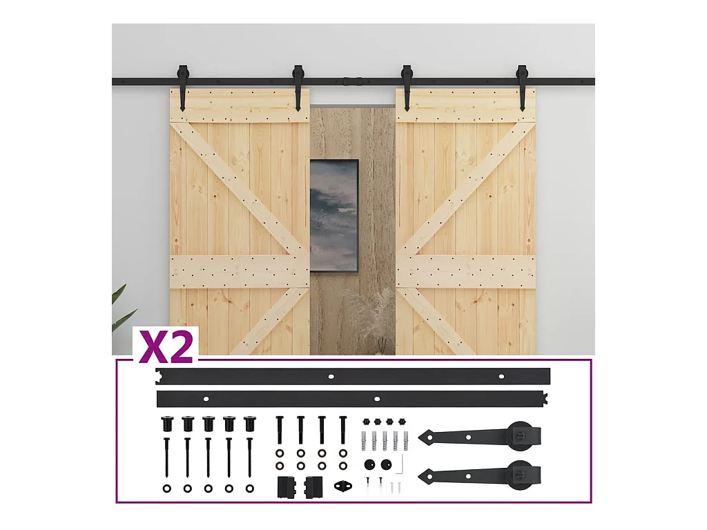 Porta de correr com ferragens 80x210 cm madeira de pinho maciça PT280954
