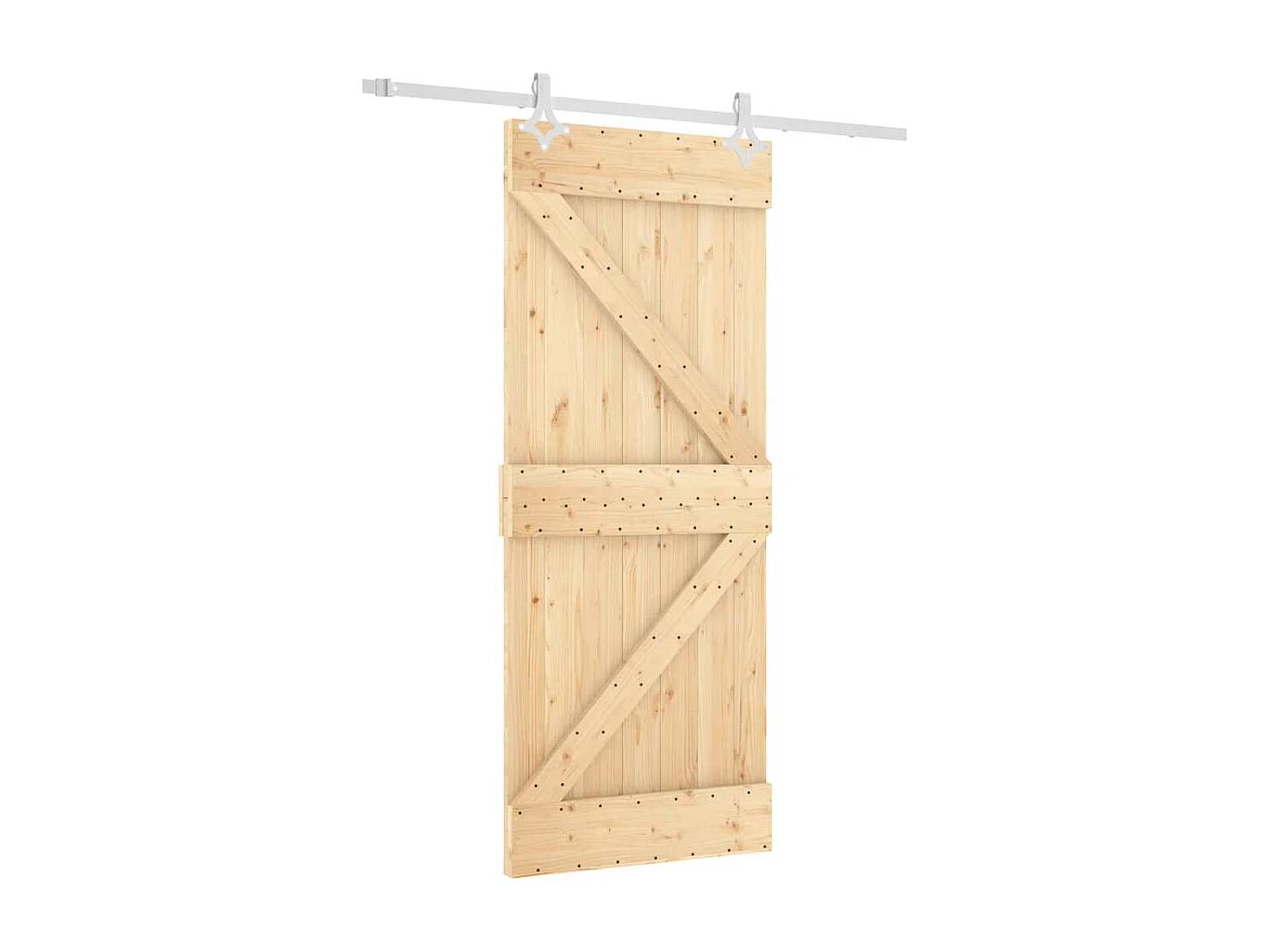 Porta de correr com ferragens 85x210 cm madeira de pinho maciça PT681256