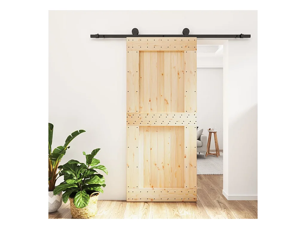 Porta de correr com ferragens 90x210 cm madeira de pinho maciça PT617004