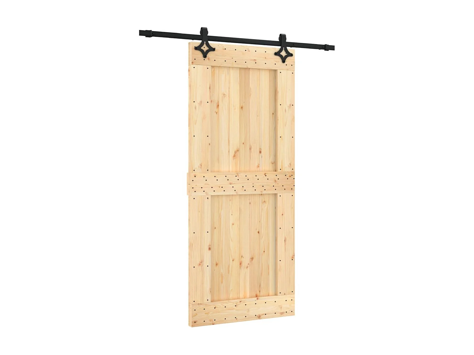 Porta de correr com ferragens 90x210 cm madeira de pinho maciça PT387583