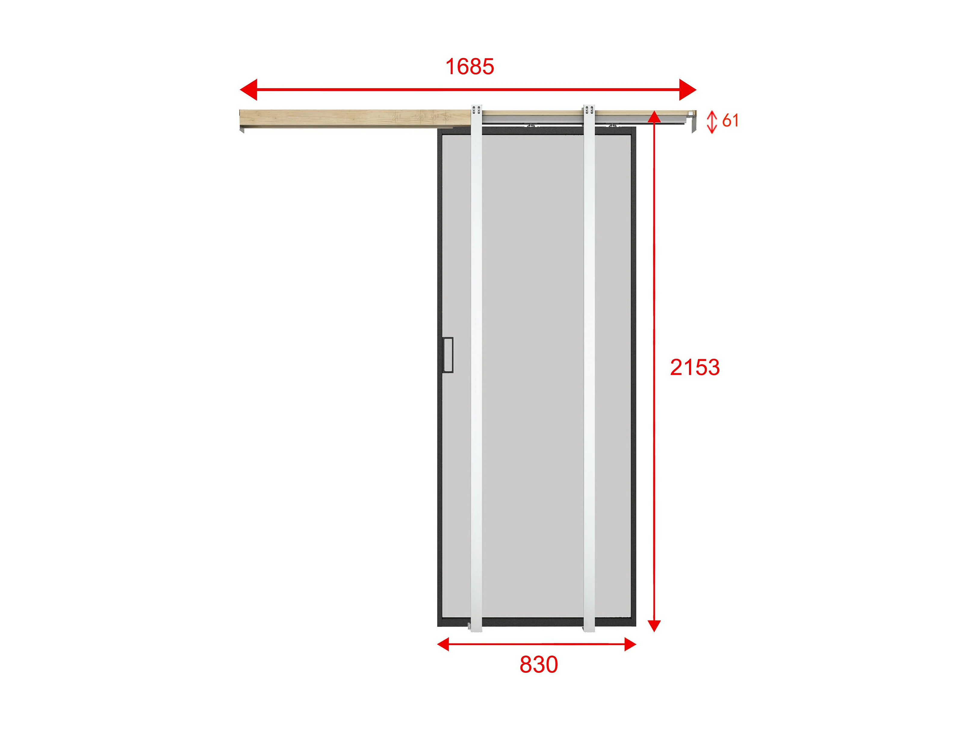 Porta de correr com sistema de tabique, alumínio e vidro temperado fosco A205 x C83 cm - LINCI II