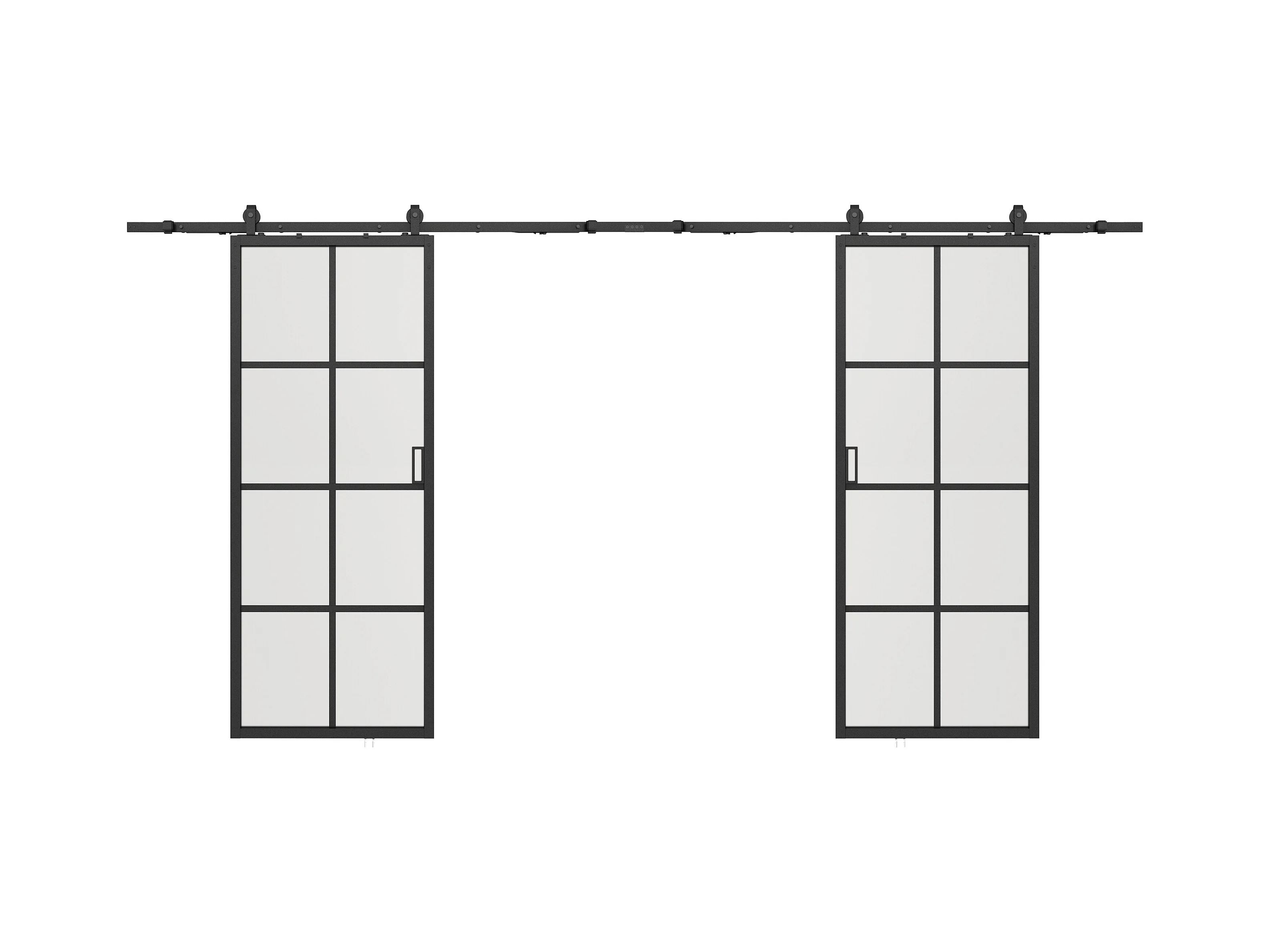 Porta de correr dupla com sistema em aplique, alumínio e vidro temperado fosco 2 x A205 x C73 cm - WILDEN II