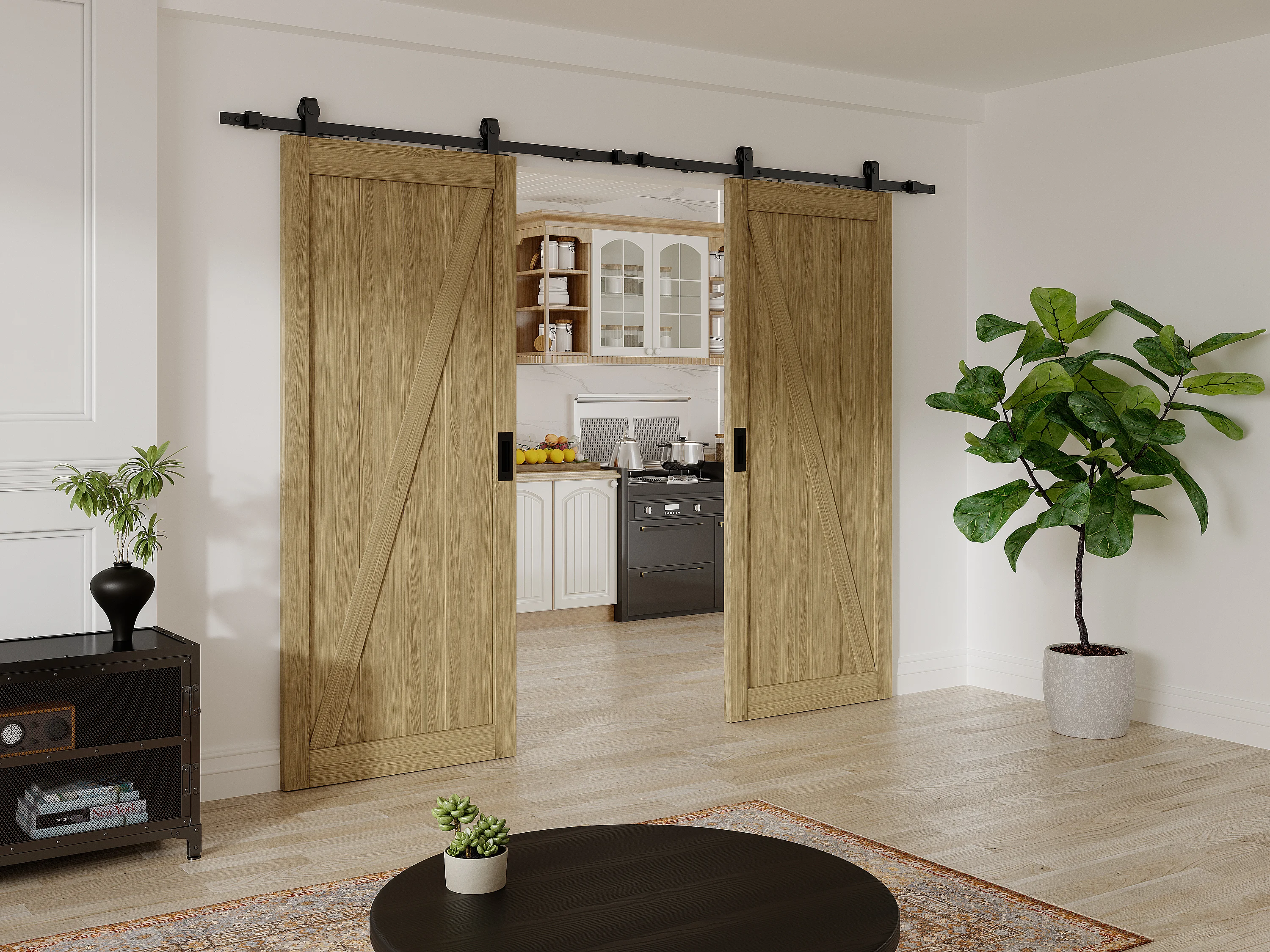 Porta de correr dupla com sistema em aplique, madeira e MDF, natural claro 2xA205xC93 cm - BALERMA