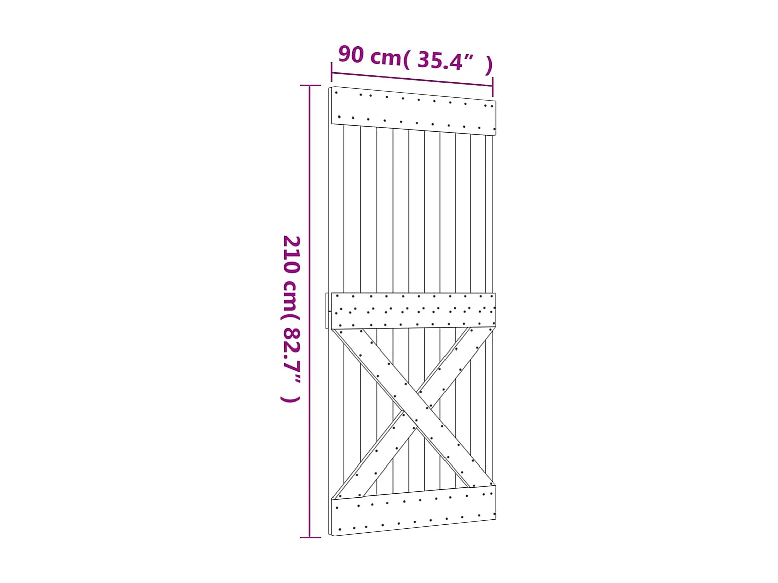 Elegante Porta de Correr em Madeira de Pinho Maciça 90x210 cm com Ferragens de Alta Qualidade