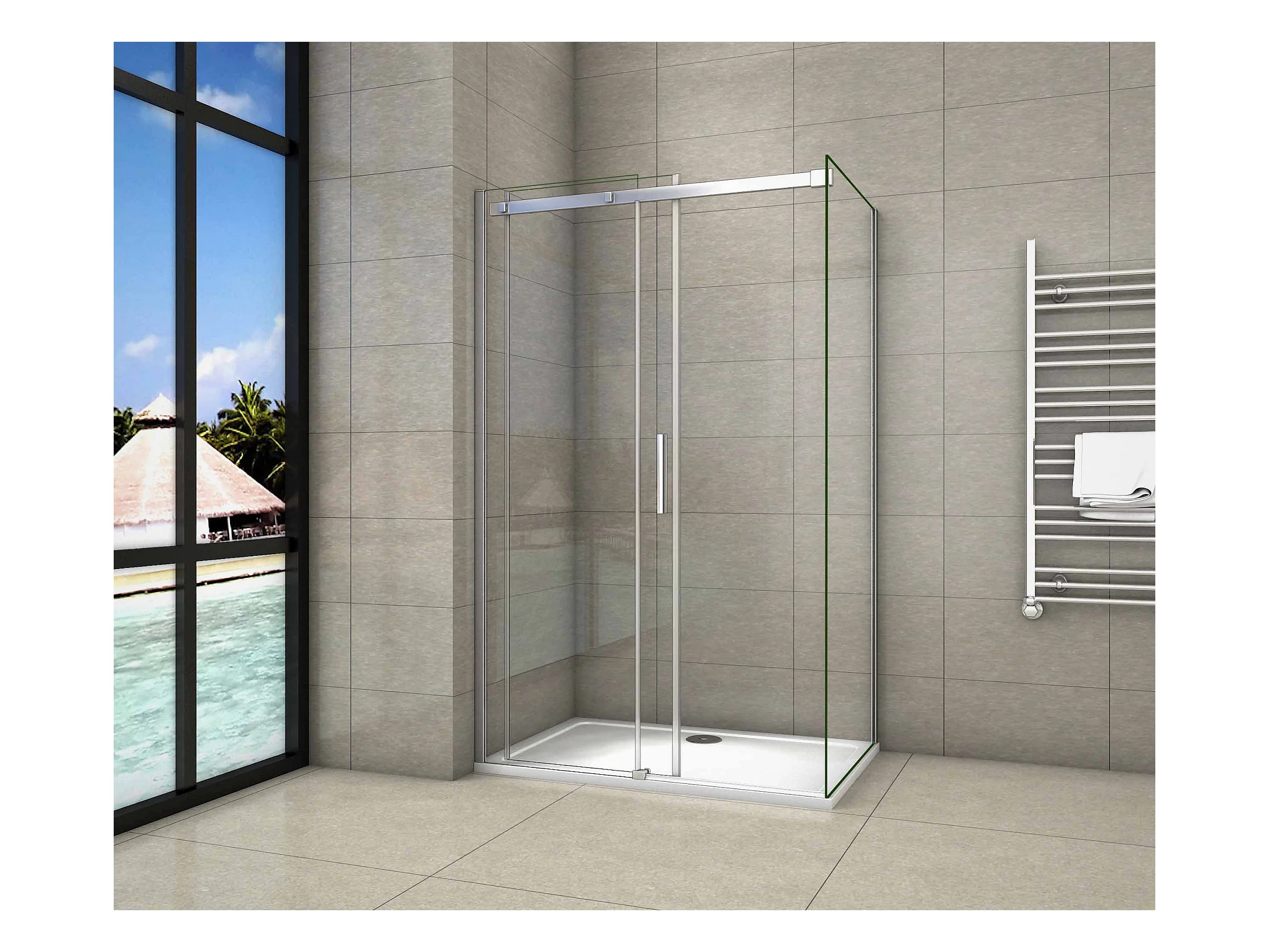 Porta de correr frontal e Painel lateral Perfil cromado Vidro temperado 6mm (1225-1245)x(983-1003)x1950mm-AICA