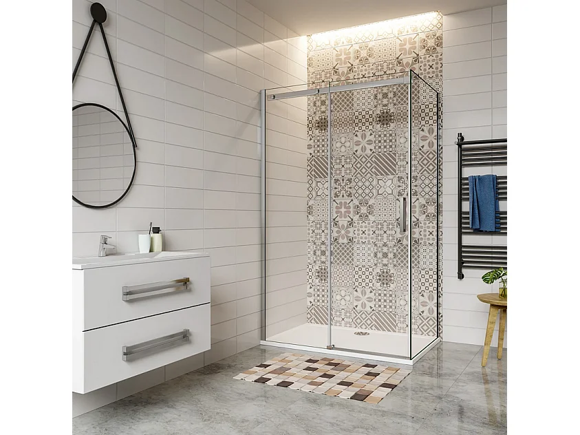 Porta de duche correr frontal e um Painel lateral Perfil cromado Vidro temperado 8mm Anticalcário (1272-1292)x(783-803)x1950mm-AICA
