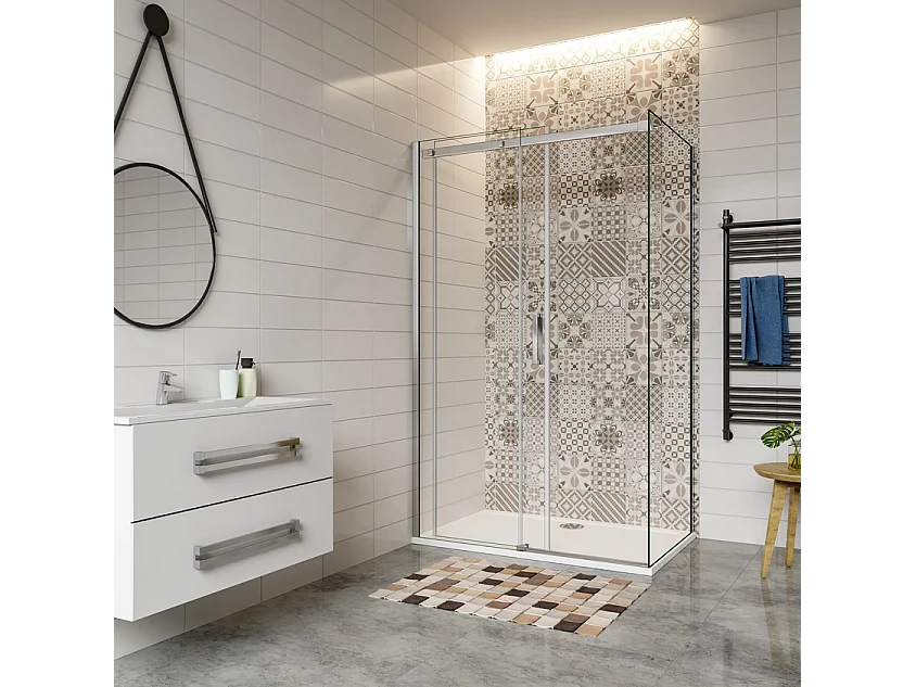 Porta de correr frontal e Painel lateral Perfil cromado Vidro temperado 6mm (975-995)x(983-1003)x1950mm-AICA
