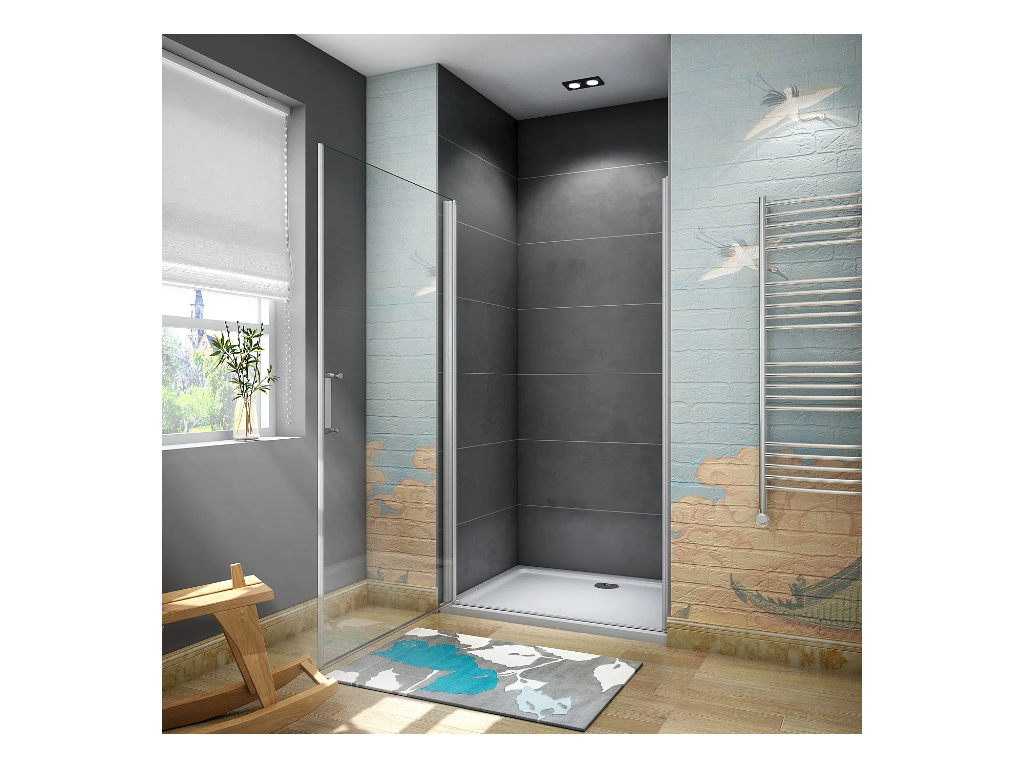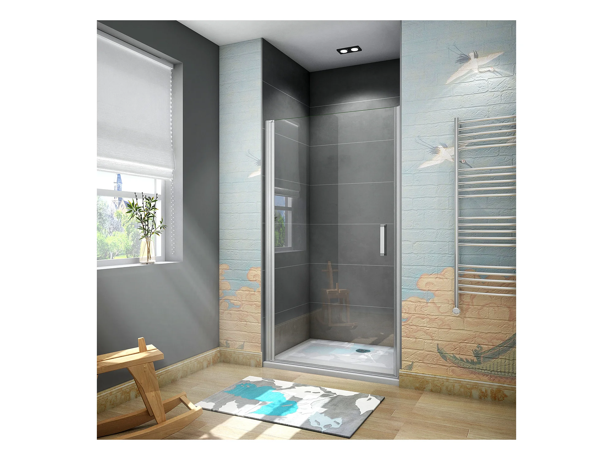 Porta de duche Bater 1 folha Perfil cinza fosco Vidro temperado 5mm (746-776)x1850mm-AICA