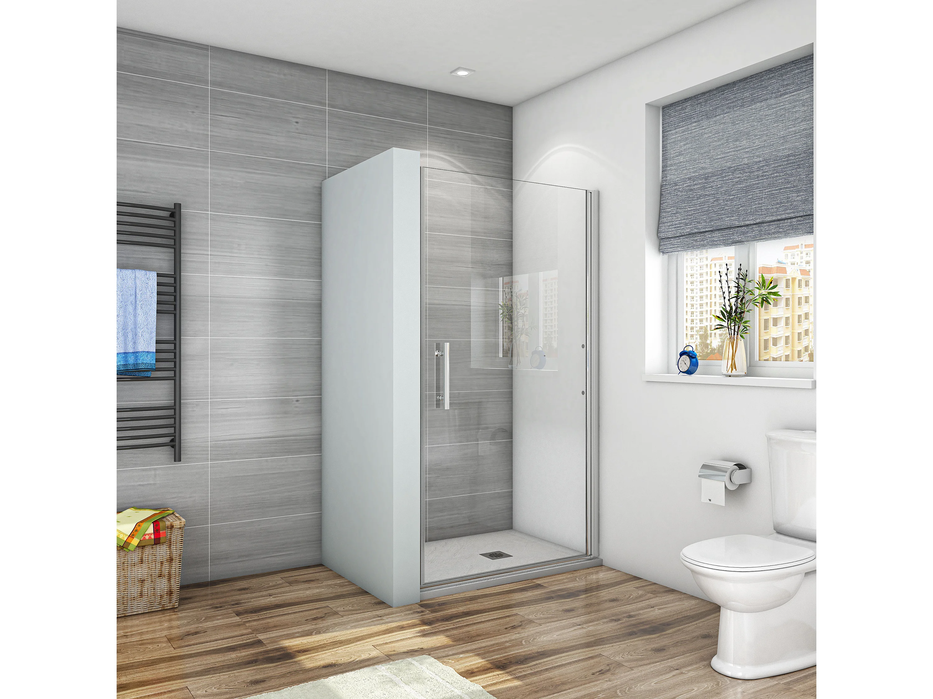 Porta de duche Bater 1 folha Perfil cromado Vidro Anticalcário 6mm (886-916)x1950mm + Base de duche 90x80x3cm + Acessórios de drenagem-AICA