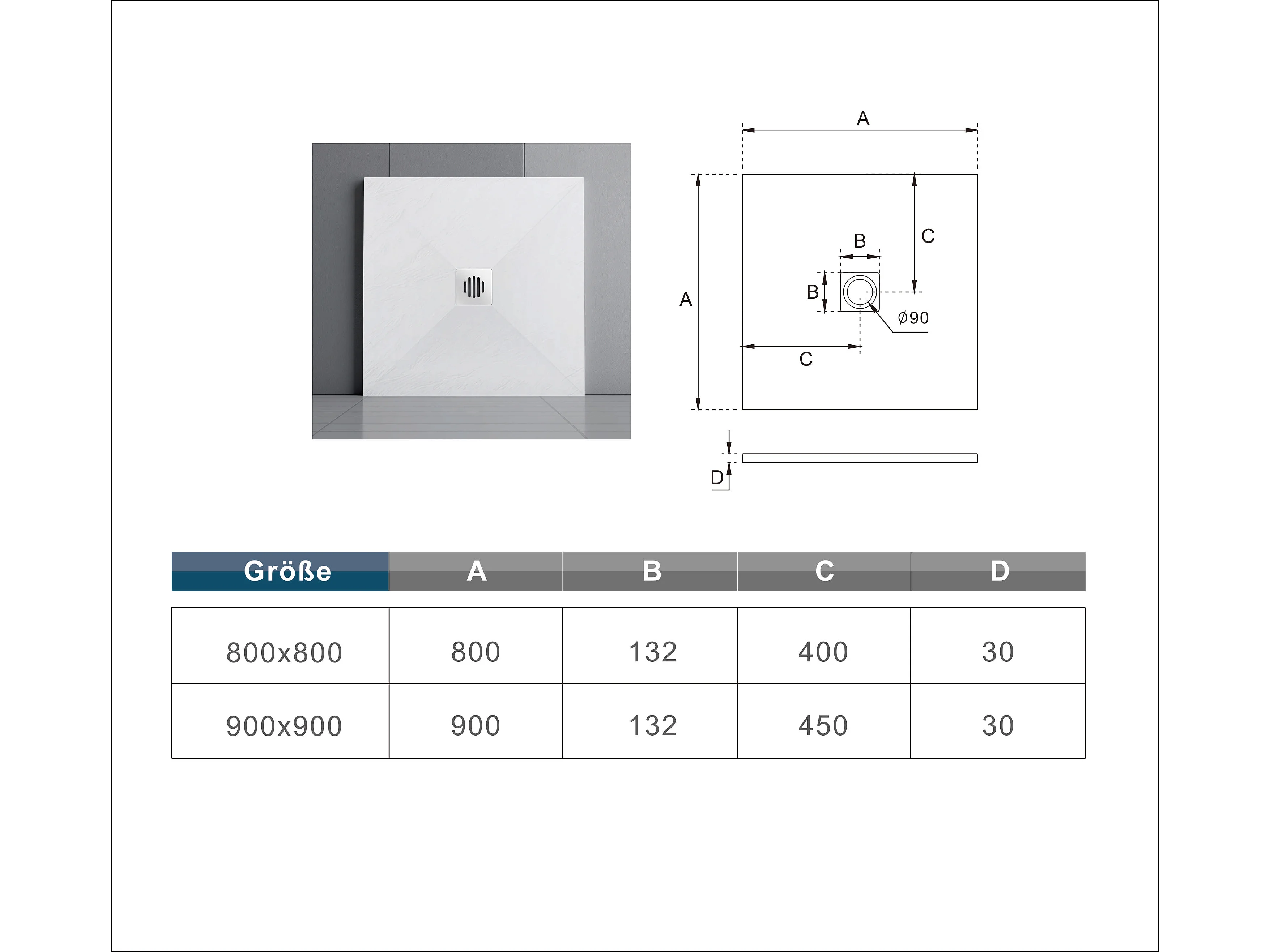 Base de chuveiro retangular 80x90 cm ABS branco PT201649