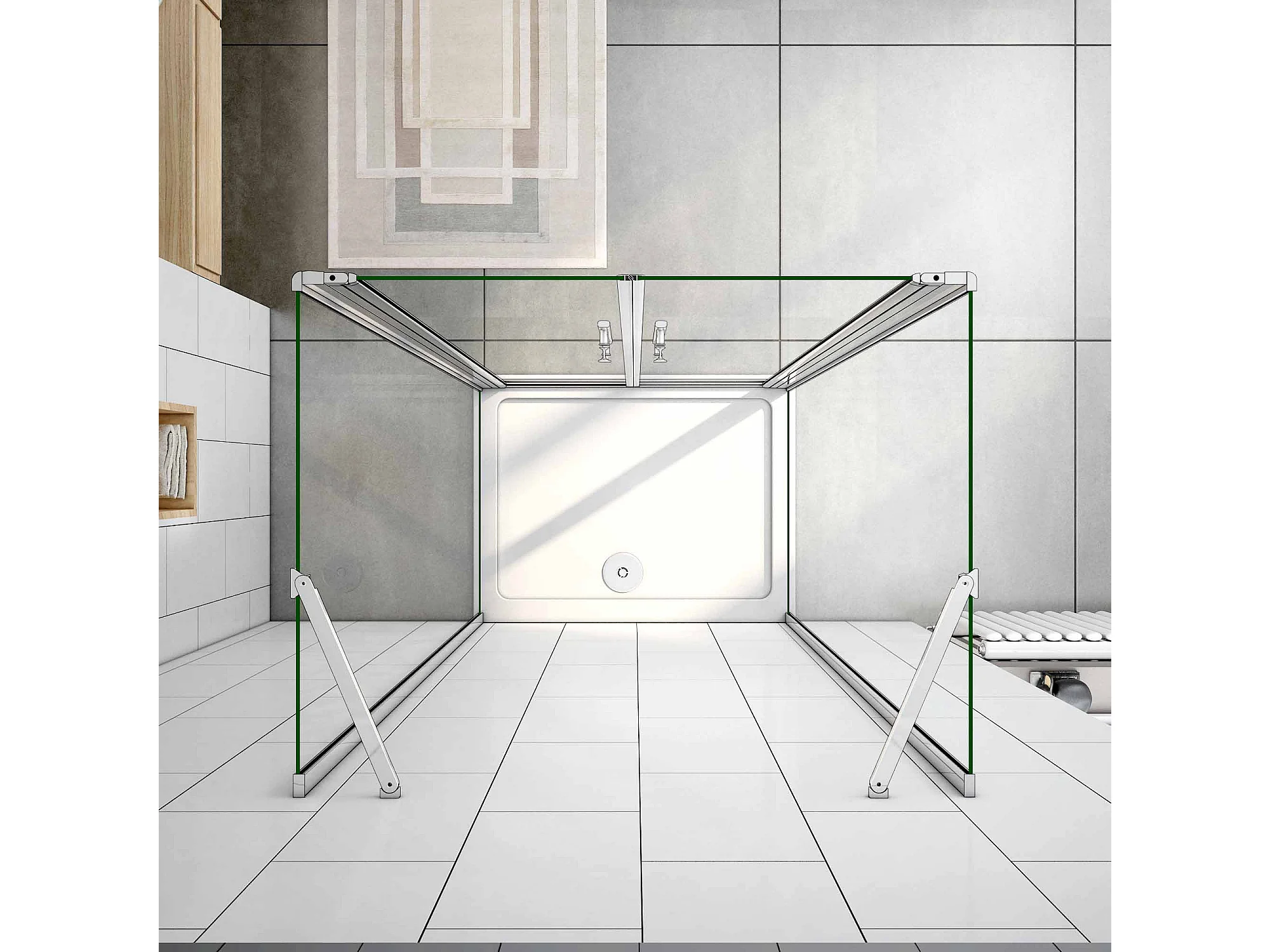 Porta de duche Bater 2 folhas e Painéis laterais Vidro Anticalcário 6mm Perfil cromado (780-800)x(1134-1174)x(780-800)x1950mm-AICA