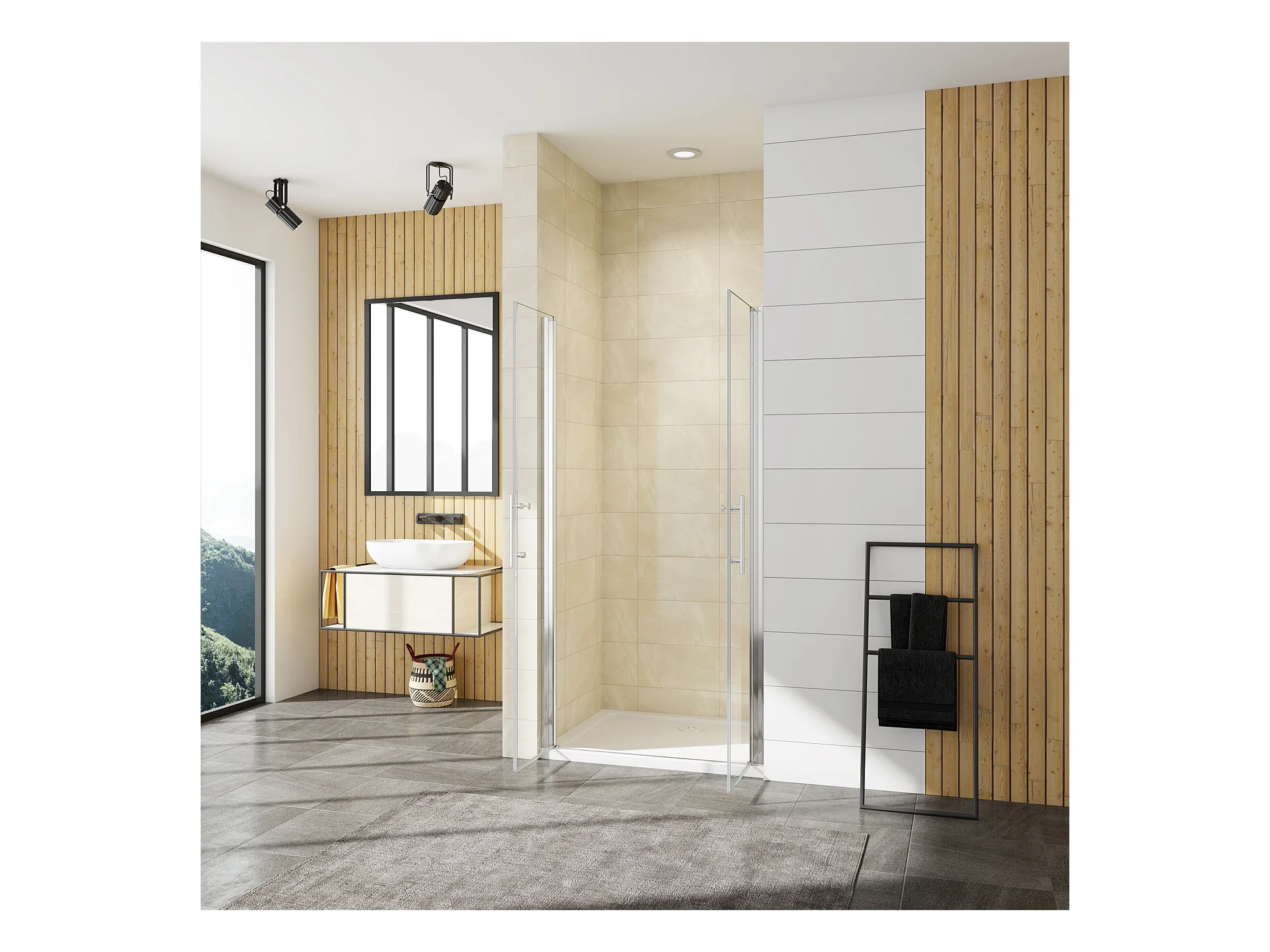 Porta de duche Bater 2 folhas e Painéis laterais Vidro Anticalcário 6mm Perfil cromado (880-900)x(1084-1124)x(880-900)x1950mm-AICA
