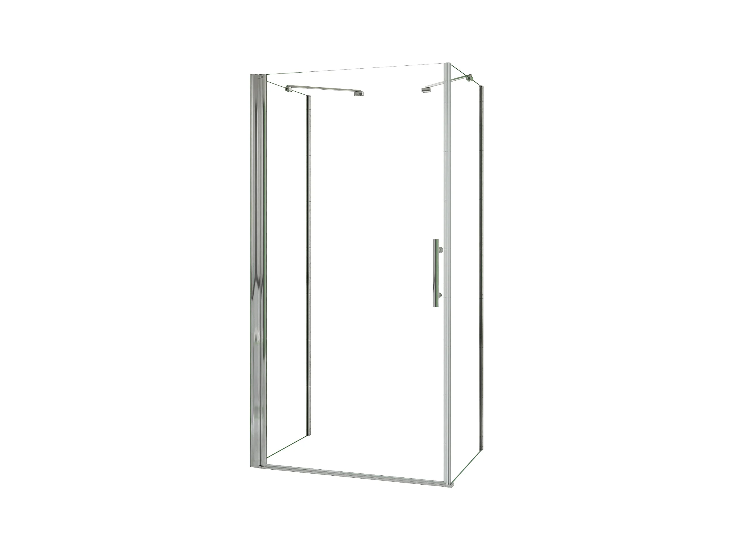 Porta de duche Bater e Painel lateral uma Barra fixa 140cm Perfil cromado Vidro Anticalcário 6mm (830-850)x(880-900)x1950mm-AICA