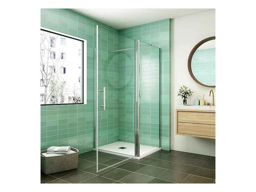 Porta de duche Bater e Painel lateral uma Barra fixa 140cm Perfil cromado Vidro Anticalcário 6mm (930-950)x(880-900)x1950mm-AICA