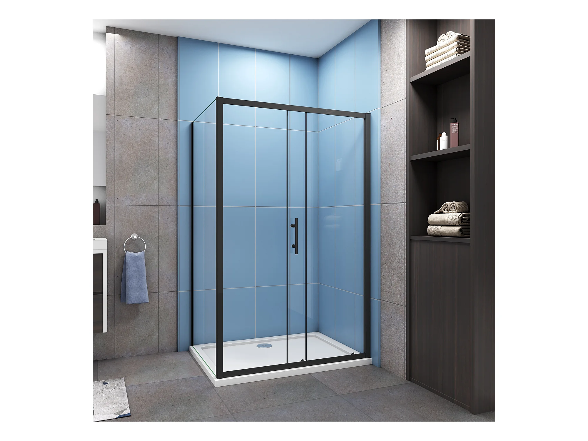 Porta de duche correr frontal e dois Painéis laterais vidro temperado 5mm Perfil preto mate (780-800)x(1363-1403)x(780-800)x1850mm-AICA