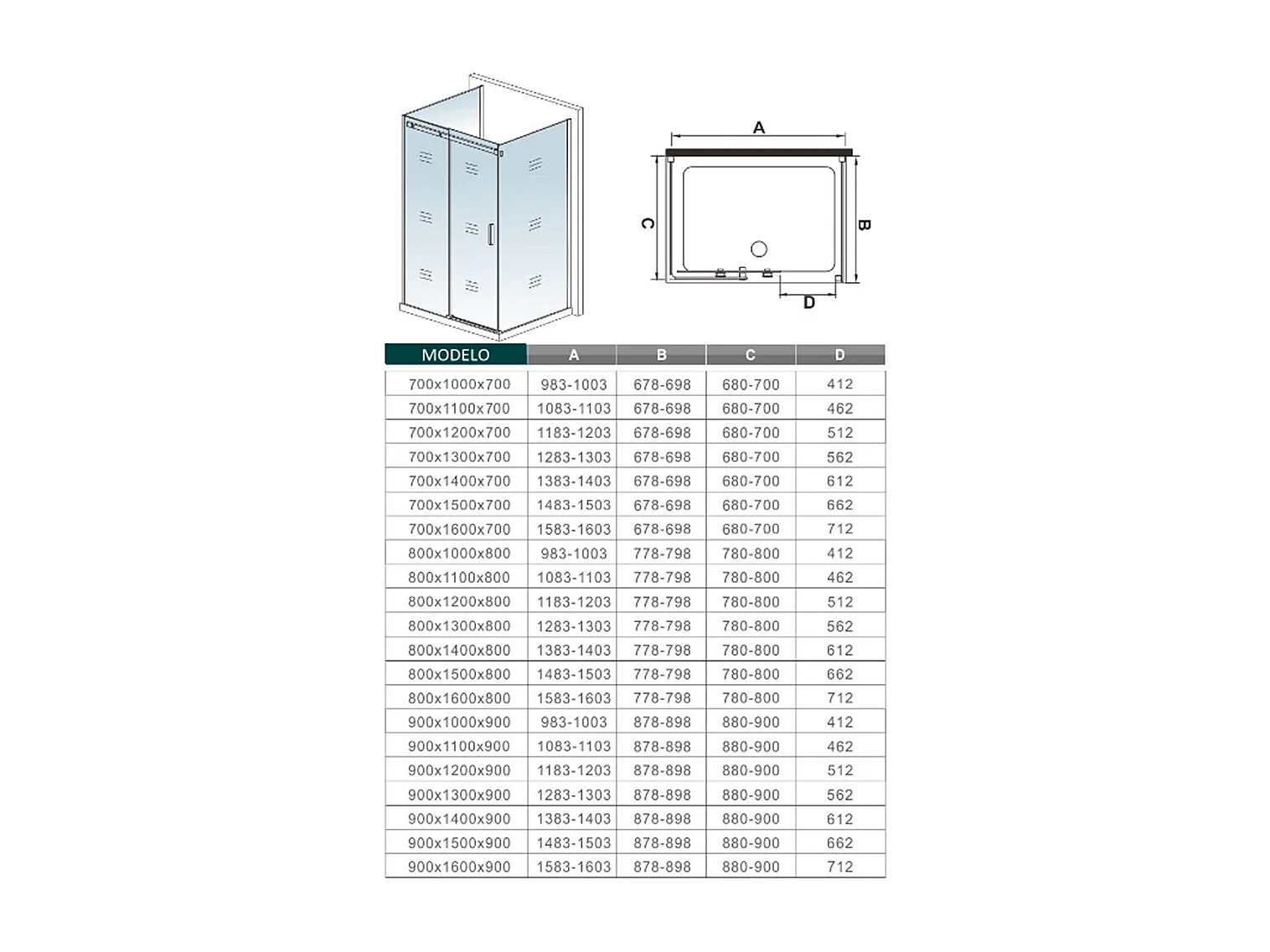 Porta de duche correr frontal e dois Painéis laterais Perfil cromado Vidro Anticalcário 8mm (680-700)x(1583-1603)x(678-698)x1950mm-AICA
