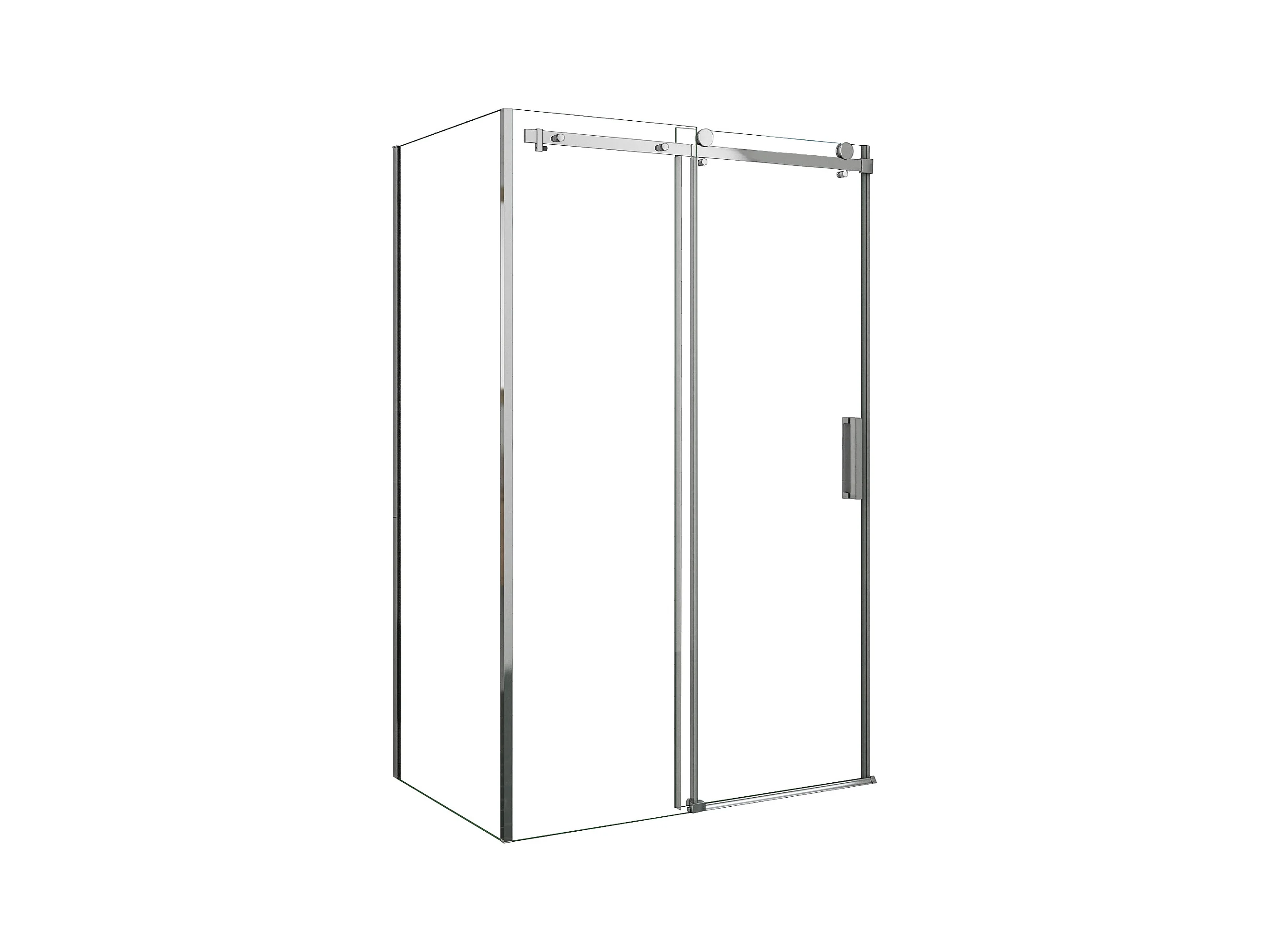 Porta de correr frontal e Painel lateral Perfil cromado Vidro temperado 6mm (1525-1545)x(883-903)x1950mm-AICA