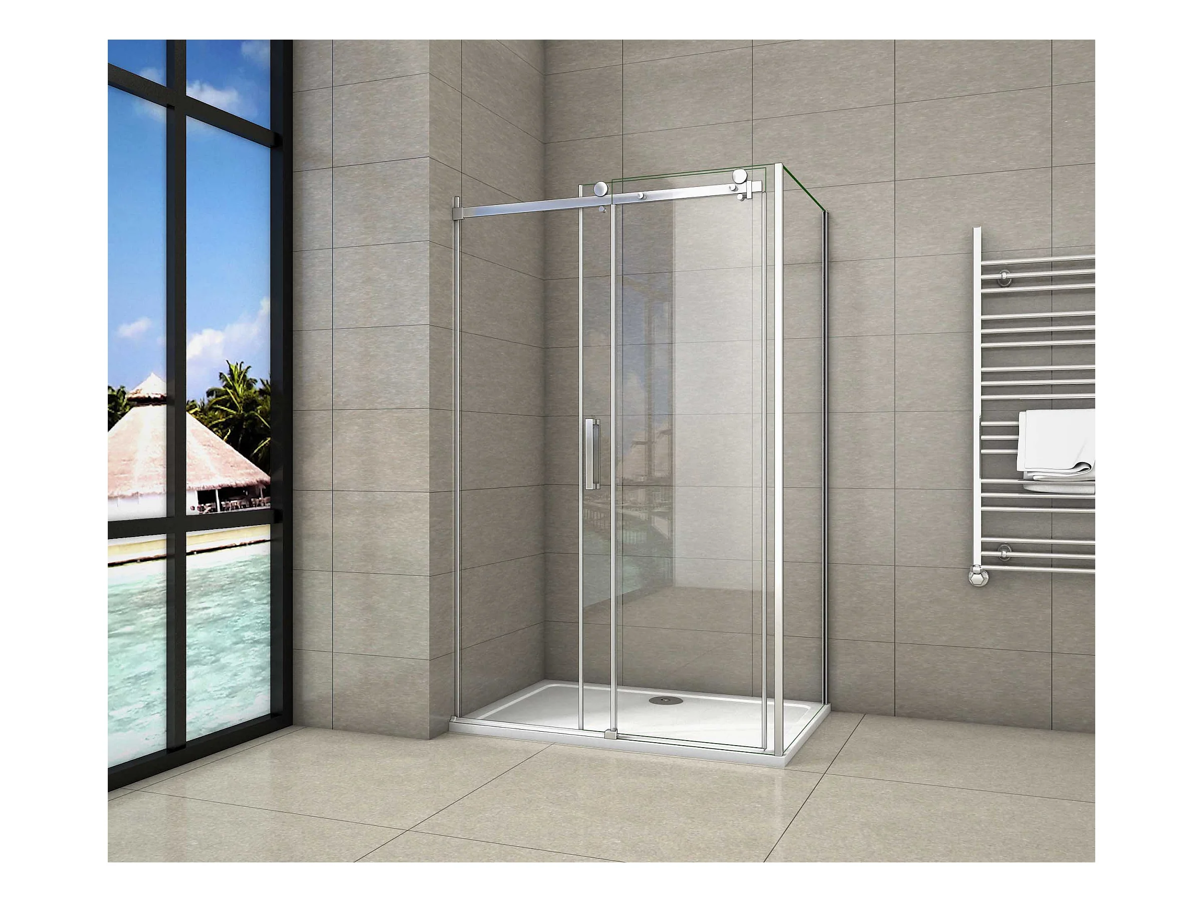 Porta de duche correr frontal e um Painel lateral Perfil cromado Vidro temperado 8mm Anticalcário (1422-1442)x(783-803)x1950mm-AICA