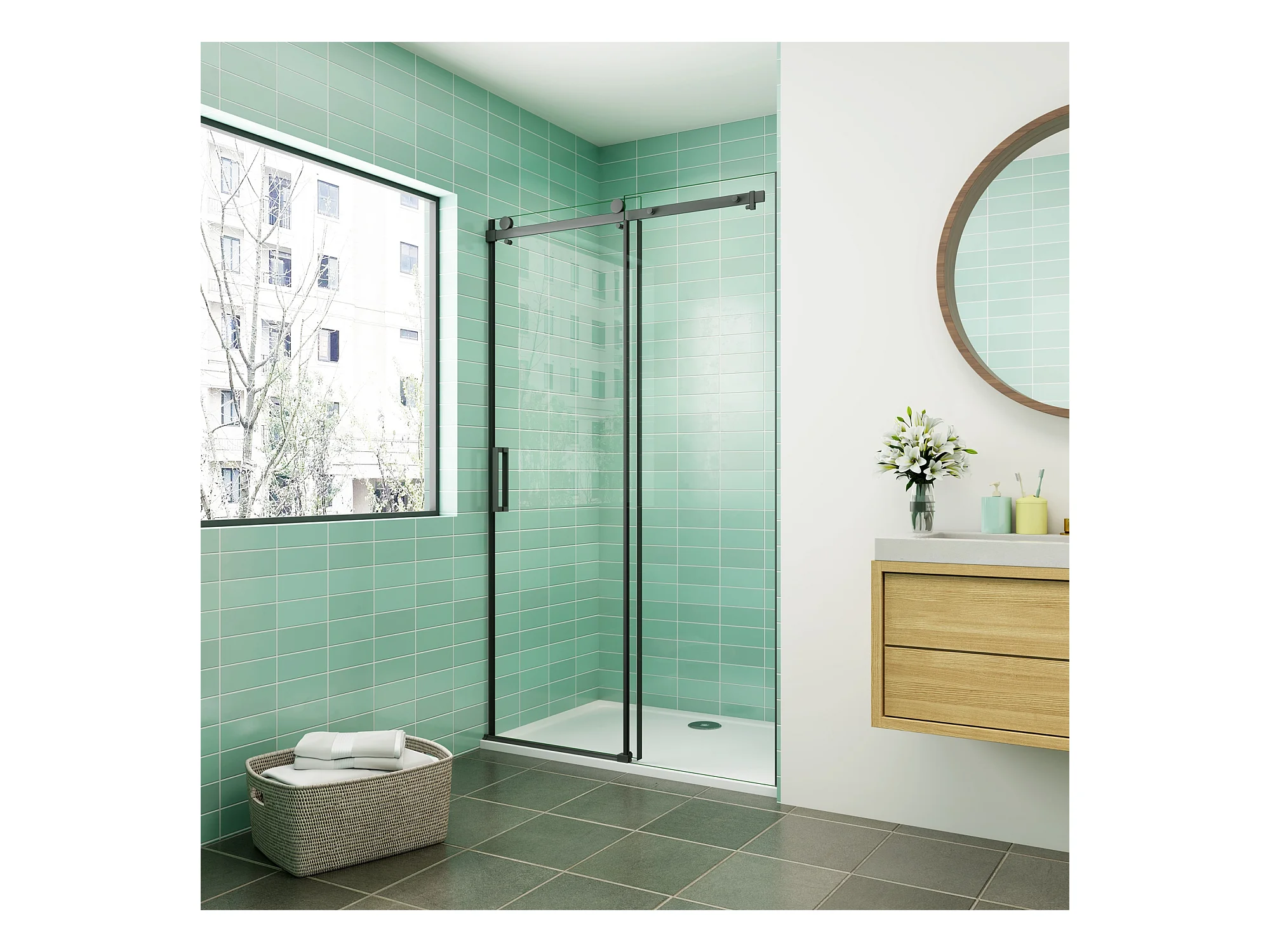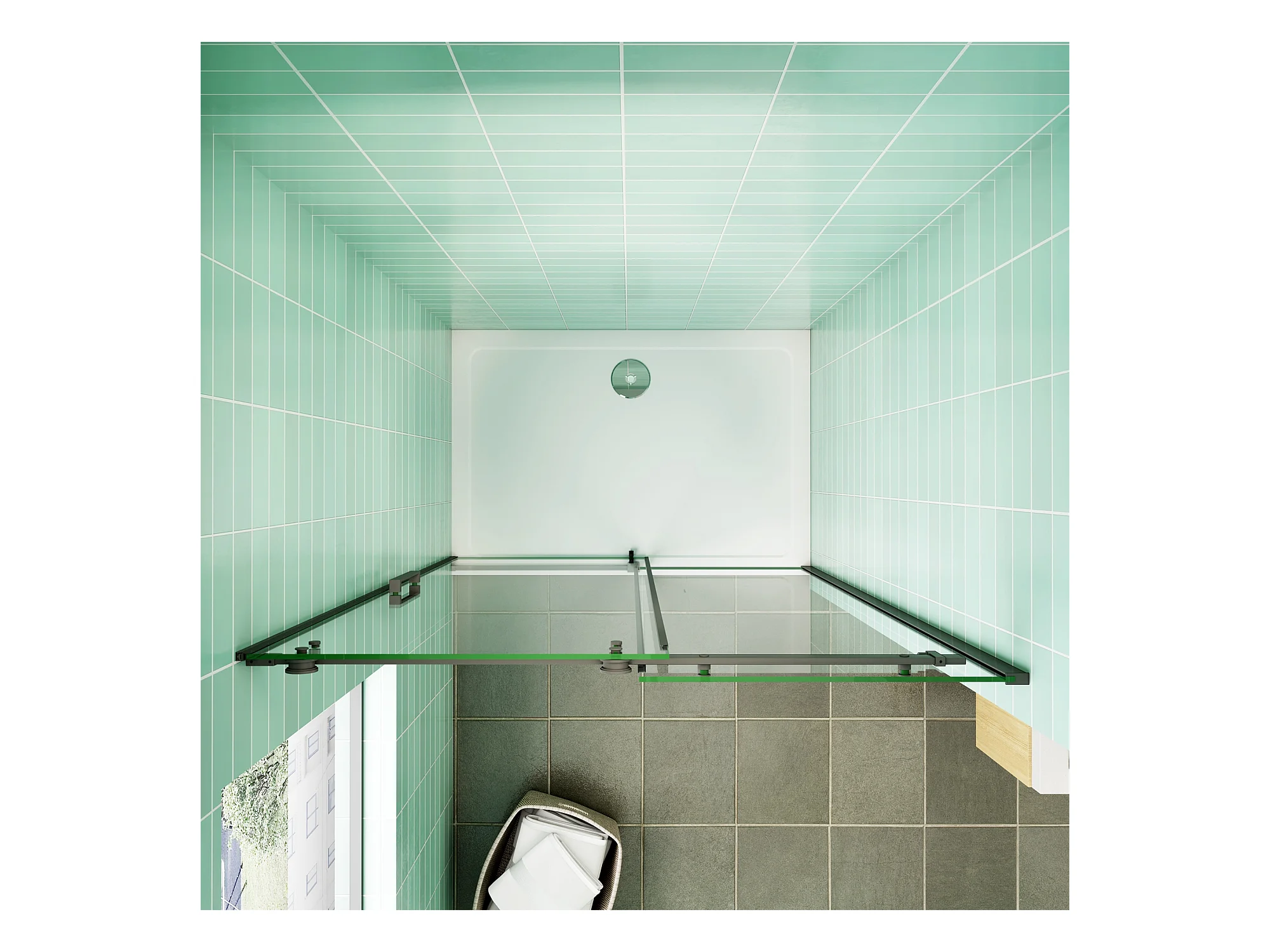 Porta de duche correr frontal Perfil preto mate Vidro temperado 8mm com tratamento anti-calcário (1360-1400)x2000mm-AICA