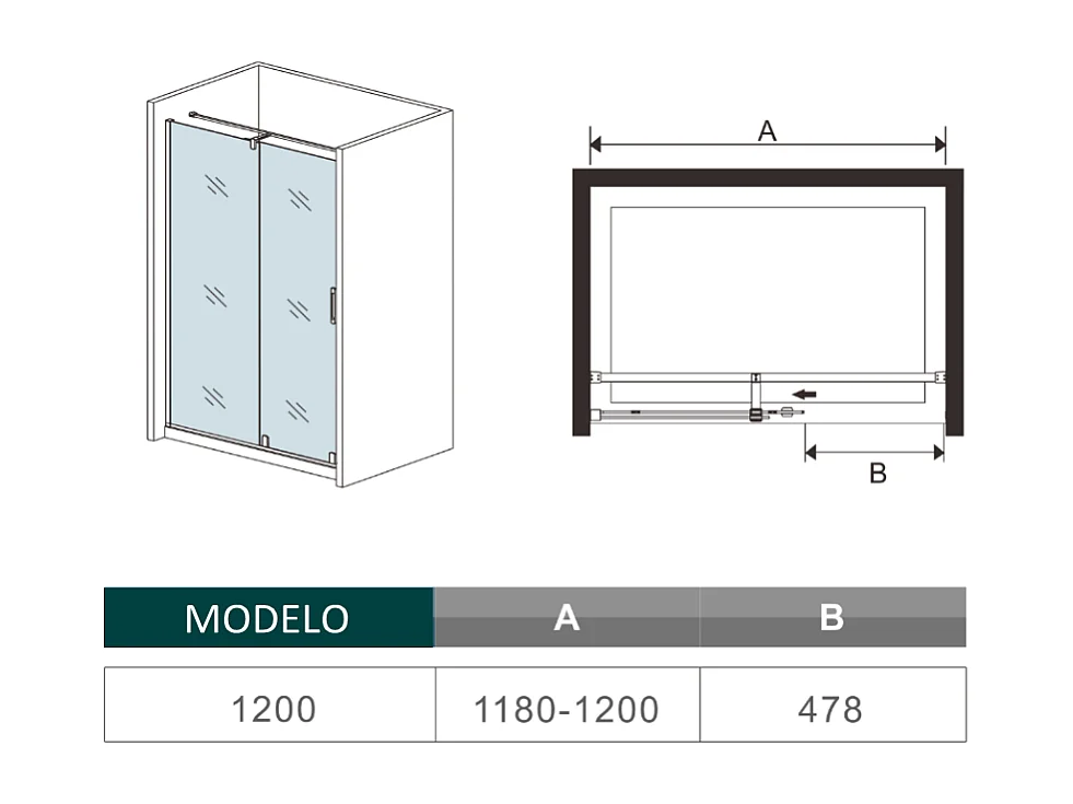 Porta de duche correr Perfil cromado com Barra Vidro Anticalcário 8mm (1180-1200)x1950mm-AICA