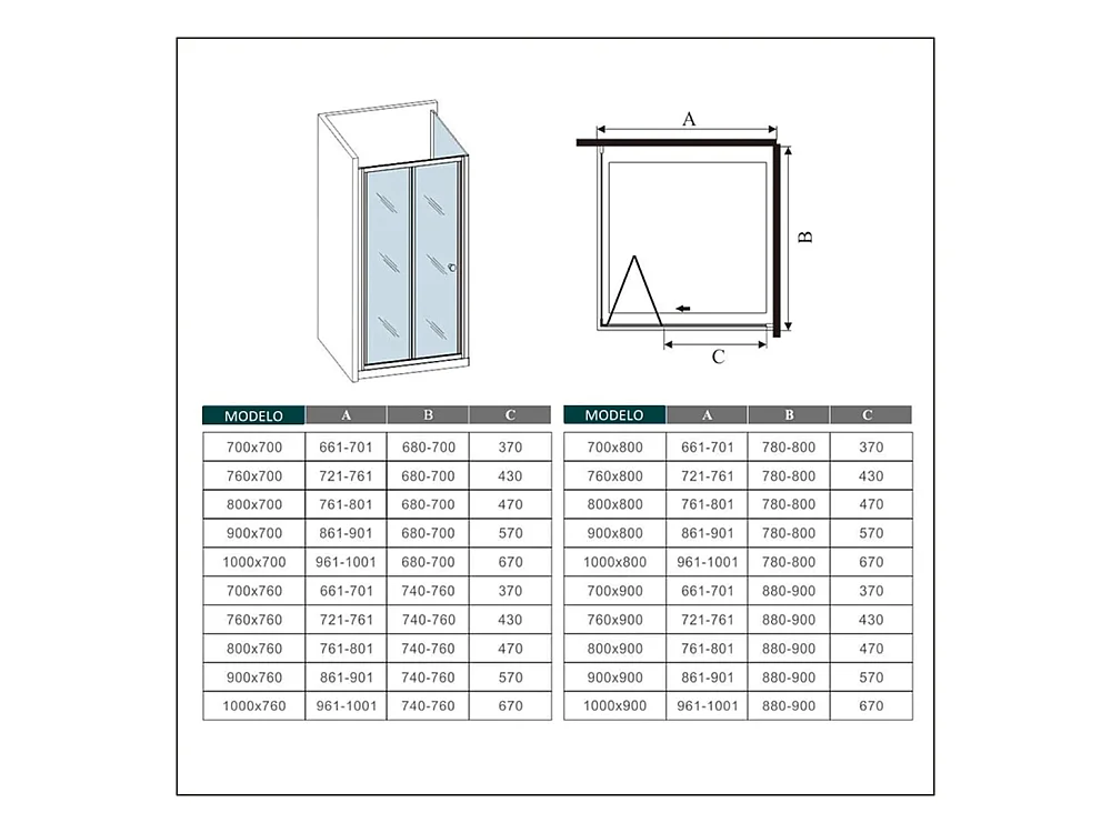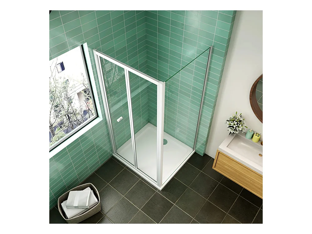 Porta de duche de fole e Painel lateral Perfil cinza fosco Vidro temperado 5mm (761-801)x(880-900)x1850mm-AICA